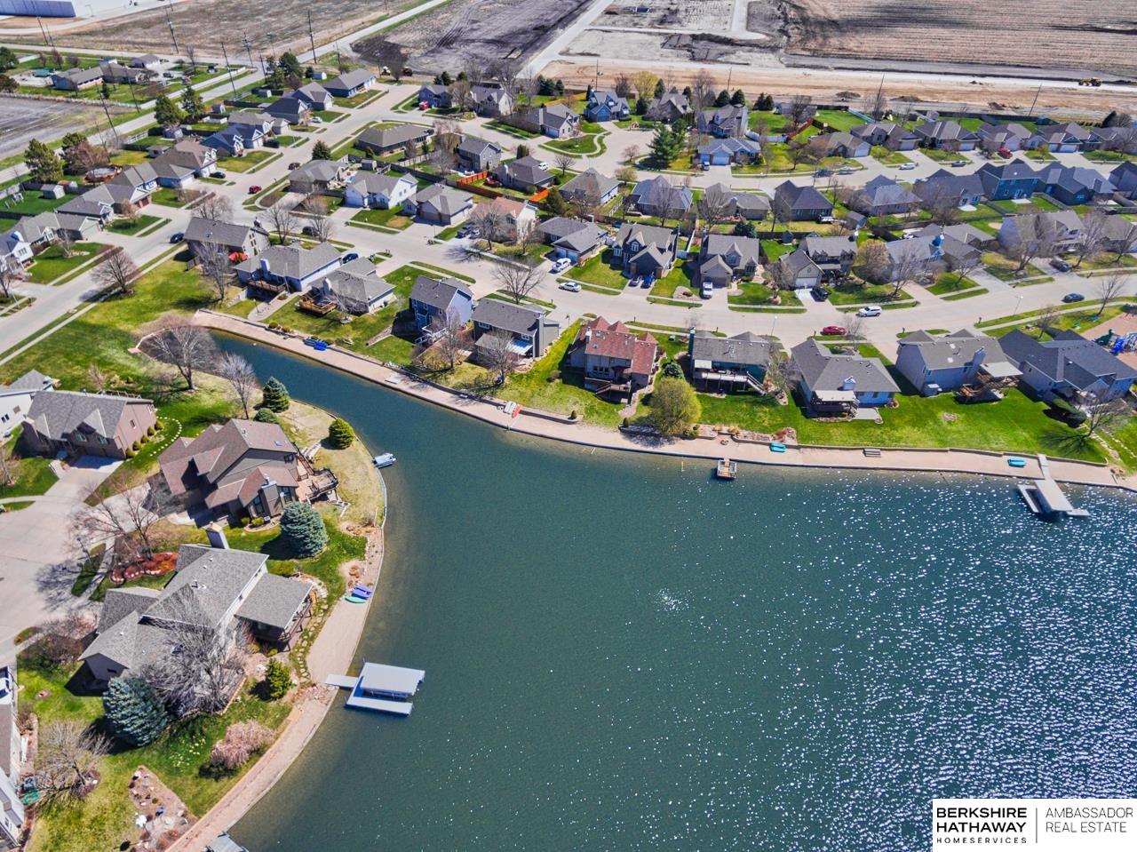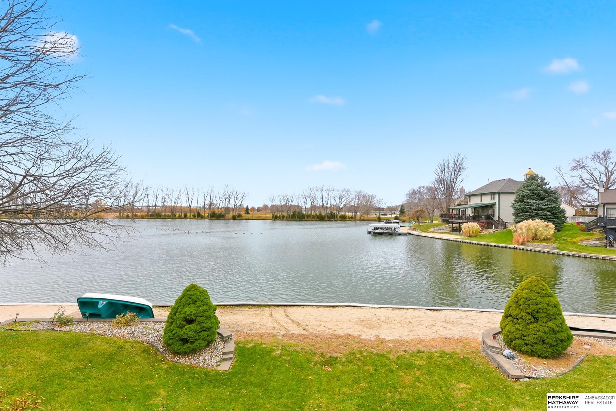 Welcome home to this beautiful lakefront property in the popular Deerfield subdivision. Step into a soaring two-story foyer leading to formal living and dining rooms. The updated kitchen features granite countertops and opens to an eat-in area and cozy family room with a gas log fireplace. The main level also includes a laundry room and half bath. Upstairs is a spacious primary suite with walk-in closet. The primary bath offers granite countertops, double sinks, a whirlpool tub, and a skylight. Two additional bedrooms with walk-in closets and a full bath complete the level. The finished walkout basement adds a fourth bedroom, ¾ bath, exercise room, and storage area. Enjoy a deep 2-car garage with attic storage, plus central vac and sprinkler system. A quick 20 minutes to West Omaha. End your evening sitting on your deck enjoying the beautiful sunset views on the lake!