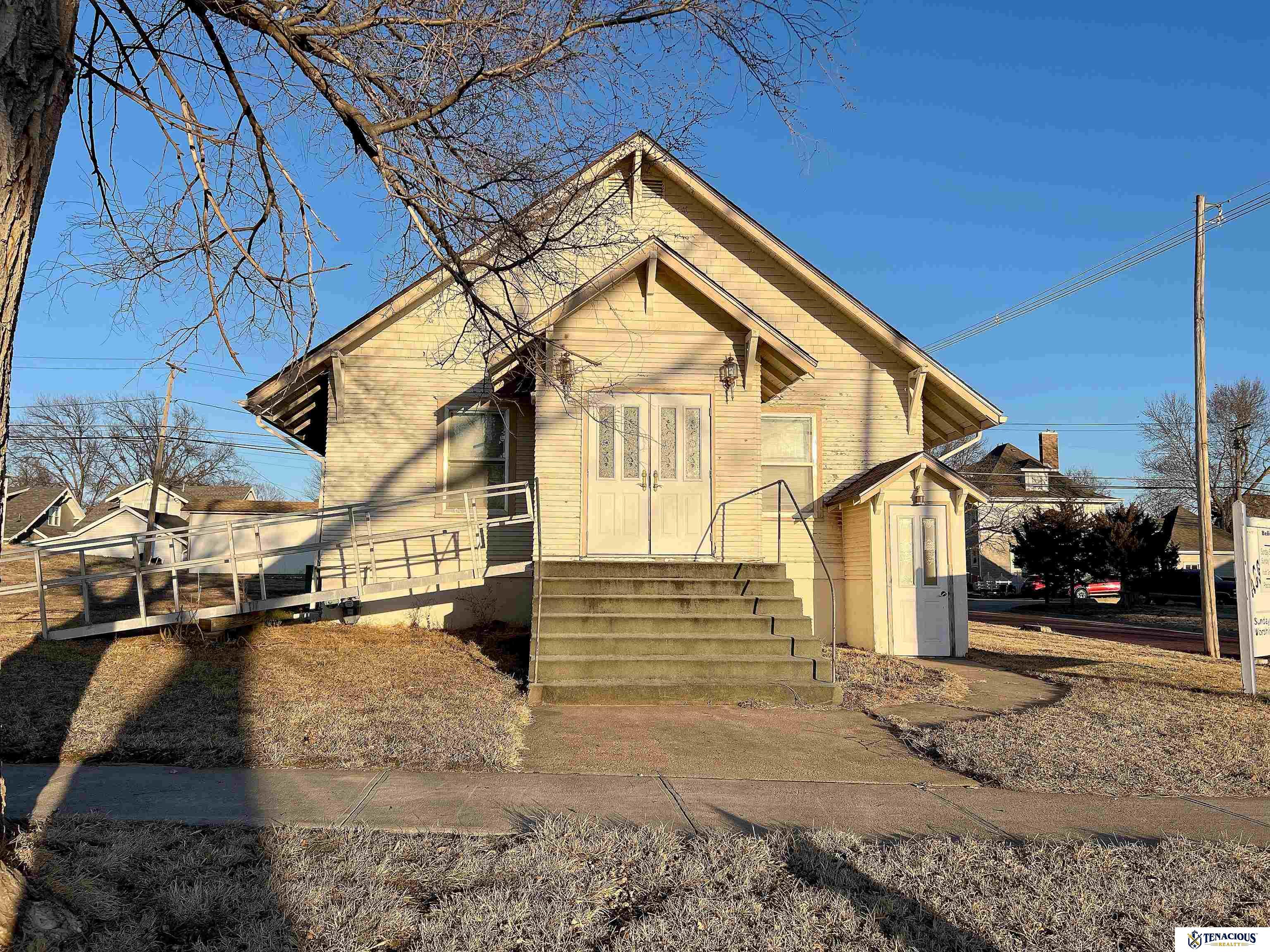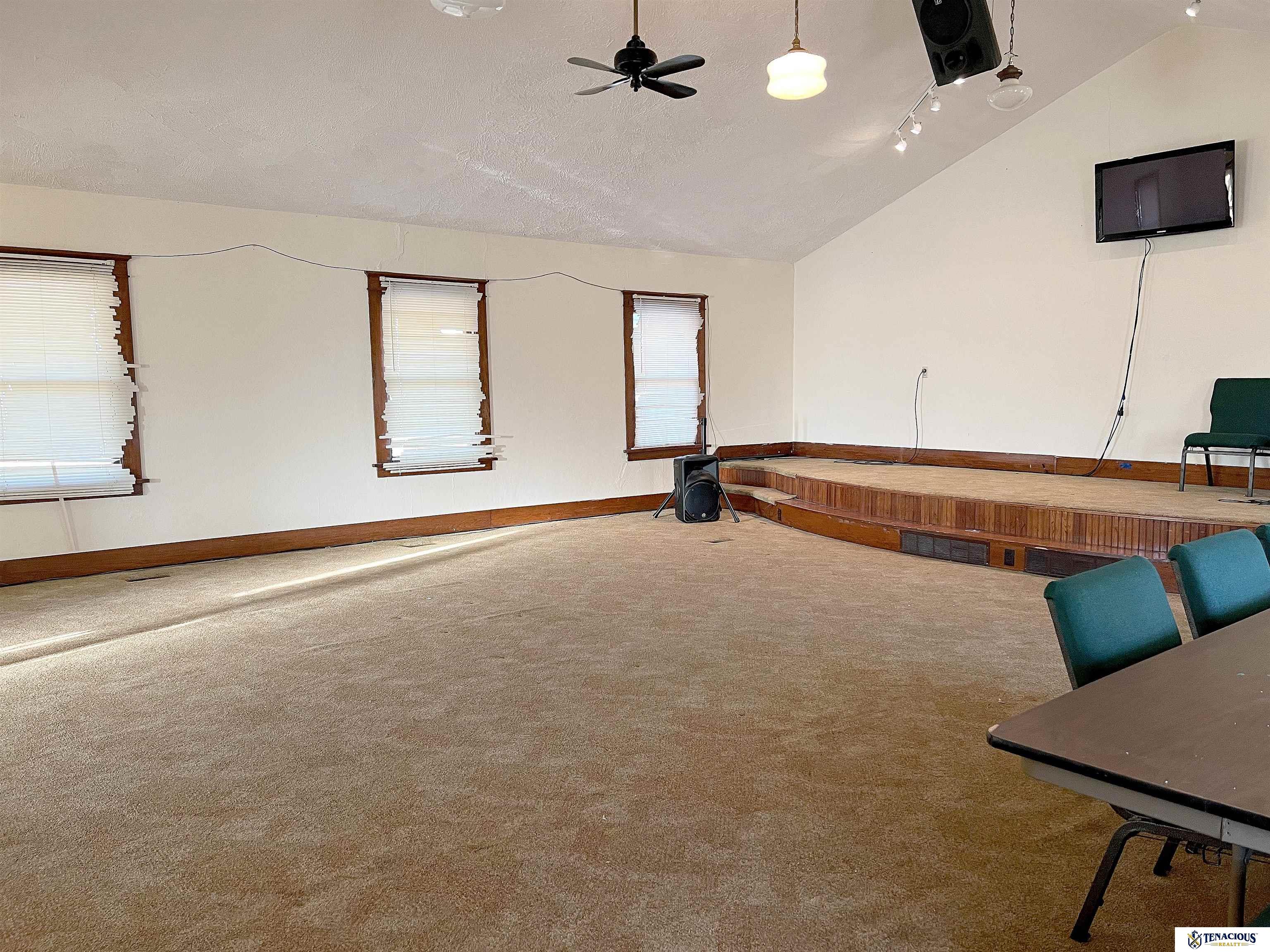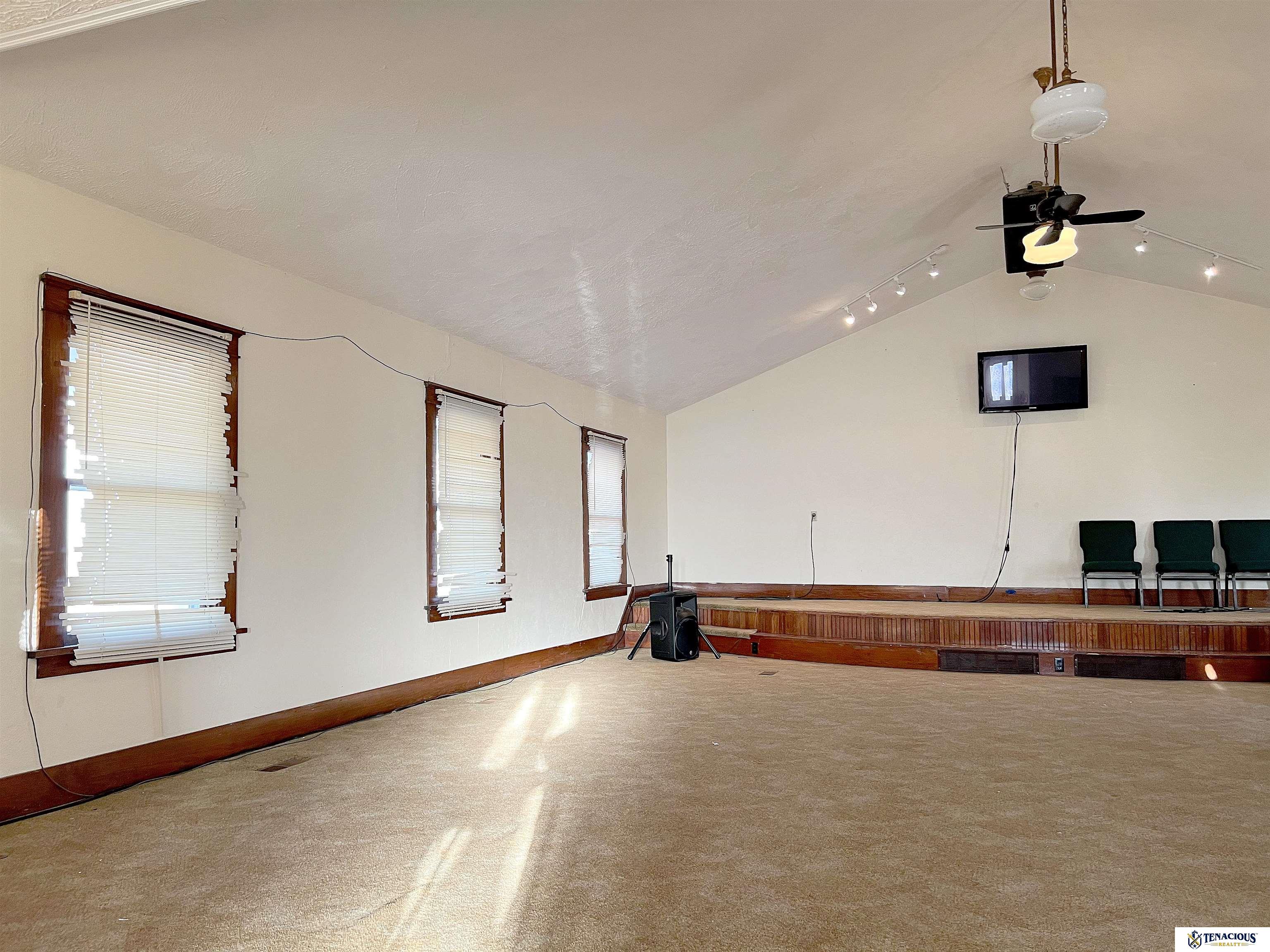Historic church building on spacious corner lot. Create a gathering venue, office/studio with downstairs apartment, or remodel into a residential home. 1100+ sq ft of space on the main floor with an open floor plan and stage, lined with large windows to flood the space with natural light. Downstairs has a gathering hall with full kitchen, 2 classrooms/bedrooms/storage, and restrooms. Check out this fantastic opportunity today!