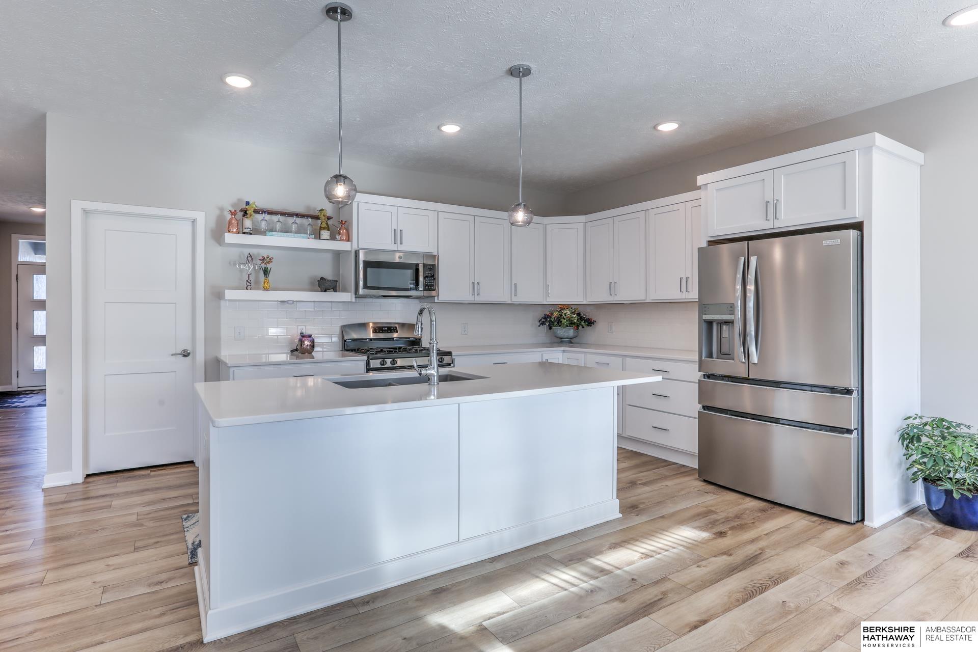 If you’ve been waiting for a home that truly feels like a retreat at the end of the day, this one delivers. Located in the Gretna School District, this thoughtfully designed ranch blends modern finishes with spaces built for easy daily living. Expansive windows fill the home with natural light, highlighting the open layout & seamless flow. The kitchen is the heart of the home with quartz counters, abundant cabinetry, walk-in pantry & large dining area. The primary suite offers a quiet escape with spa-like bath, soaking tub, tiled shower & expansive walk-in closet. The finished basement features a spacious rec area, generous storage & dedicated sauna room, creating a true wellness space right at home. Step outside to a flat, fully fenced backyard with new composite deck & updated landscaping, ideal for summer evenings. Conveniently located near amenities & easy commuter access, this home offers the balance of comfort, style & location that you are dreaming of right now.