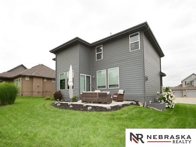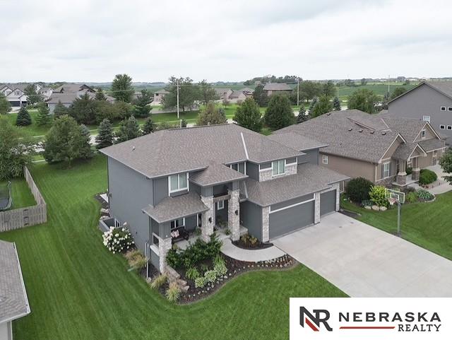 HOME SWEET HOME! Welcome to this LIKE NEW, modern yet cozy, 2-story retreat! Sunlight pours thru oversized windows, creating a bright & cheerful main level, perfect for everyday living or hosting. A coffered great room ceiling adds charm, while the floor-to-ceiling stone fireplace invites you to gather & cozy up on chilly Nebraska nights. The flex room makes an ideal office, formal dining, or sitting area & opens to the main floor living space. You'll find the quartz kitchen counters, spacious island, gas stove & hidden pantry make for easy & enjoyable cooking & entertaining experience. Drop-zone area off garage helps keep a busy life organized. All 4 bedrooms w/walk-in closets & a serene primary suite w/custom tile walk-in shower & direct access to laundry. Back stairway leads to the inviting upstairs living space. With thoughtful design & warm finishes thru-out, this move-in-ready home blends modern style w/classic comfort. It is waiting for you to make it yours!