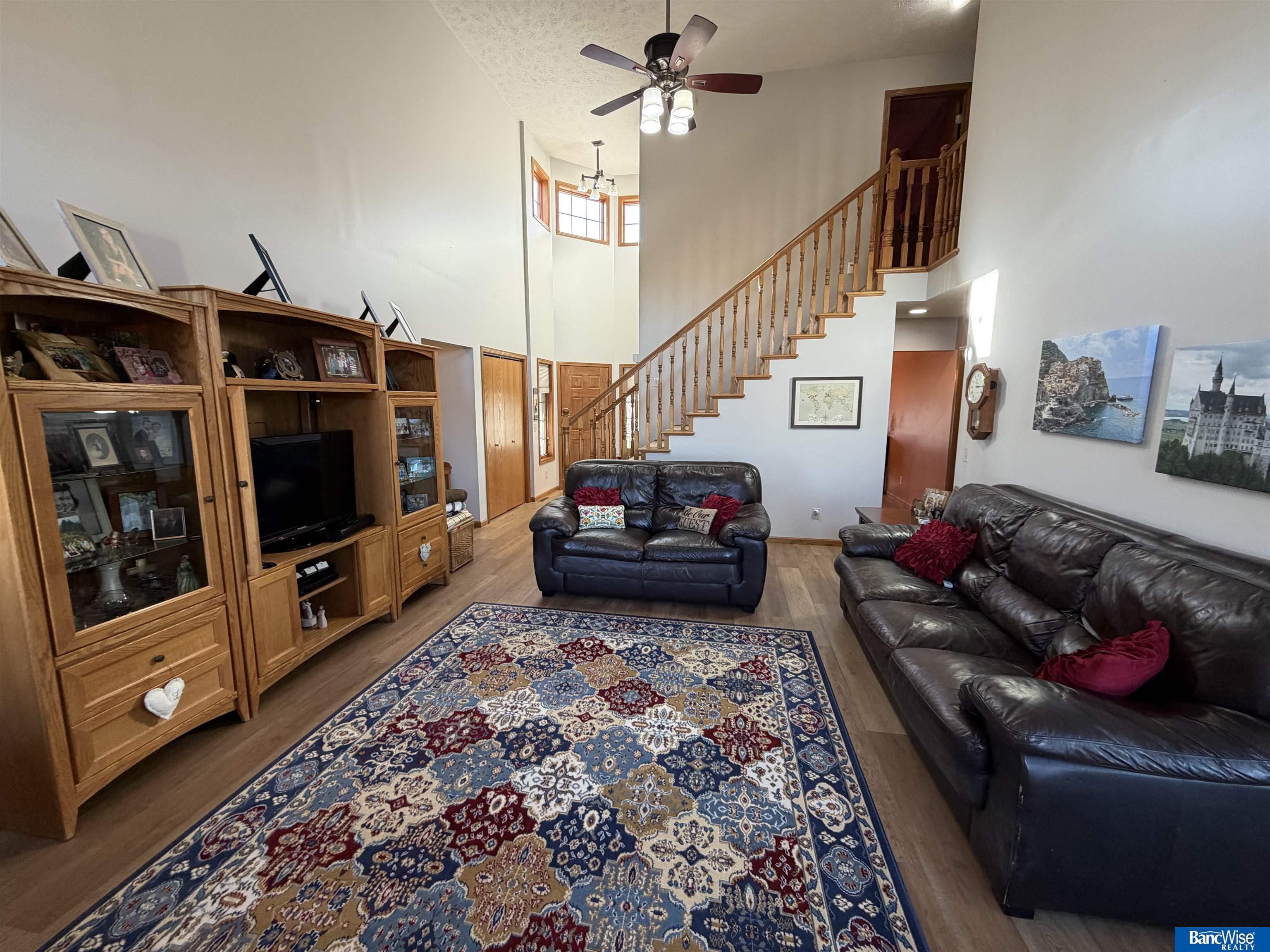 Spacious two-story home situated on a prime corner lot in a desirable neighborhood with stunning sunrise views. This well-designed home offers six bedrooms, three full bathrooms, and one half bath, providing space and flexibility for a variety of living needs. The main level features a private primary suite, convenient main-floor laundry, tall ceilings in the entry and living room, and an abundance of natural light from large windows throughout. A formal dining room complements the eat-in kitchen, while the gas fireplace creates a warm and inviting living space. The finished basement expands the living area with two additional bedrooms, a dedicated office, movie/game/workout room, and a spacious family room with a second gas fireplace. Additional highlights include a three-car garage, under ground sprinklers, established yard, covered deck, and a corner lot setting that enhances privacy and curb appeal. This home offers comfort, space, and an exceptional setting.