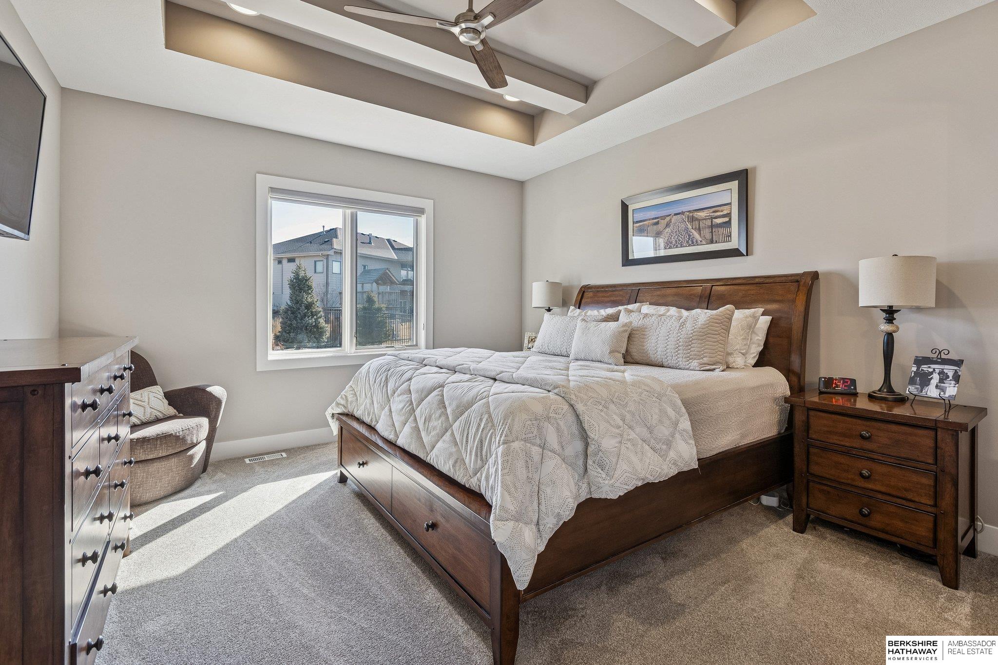 Stunning custom open floor plan ranch home in the custom home area of Grandview Ridge in Elkhorn South School District. Main level features gourmet kitchen with all custom cabinets, walk in pantry, professional series appliances. Large windows bring in welcoming natural light. Primary suite has dual vanity, large walk in shower, spacious walk in closet that flows to laundry room. Beautifully landscaped backyard with extended covered patio, access for a gas grill and set up for a future hot tub. Basement is ready to finish. This home was built by Nathan Homes subsidiary Laid Back Lifestyle. Convenient location, neighborhood NRD lake, Blue Sage Elementary and easy access to all amenities.