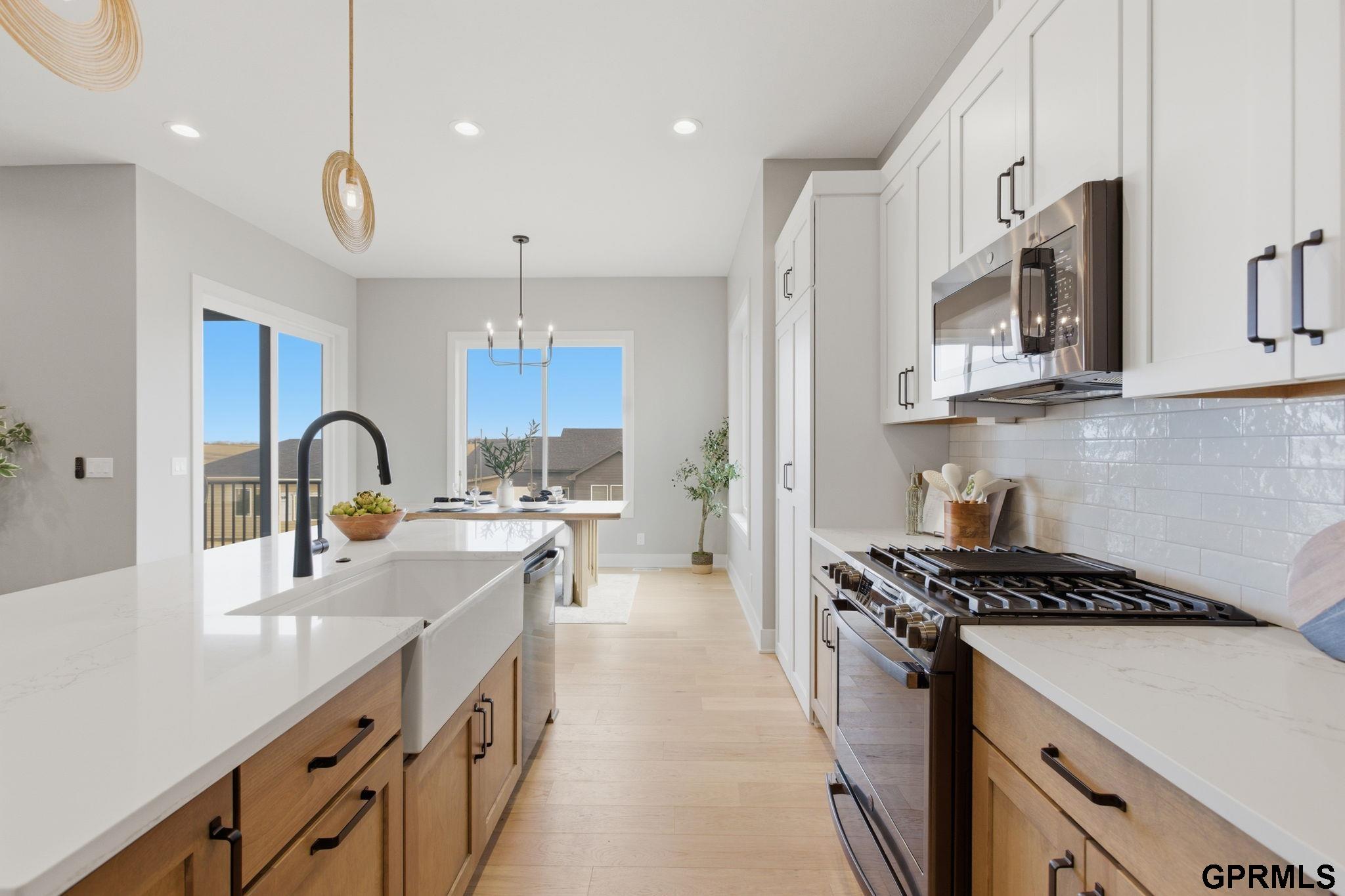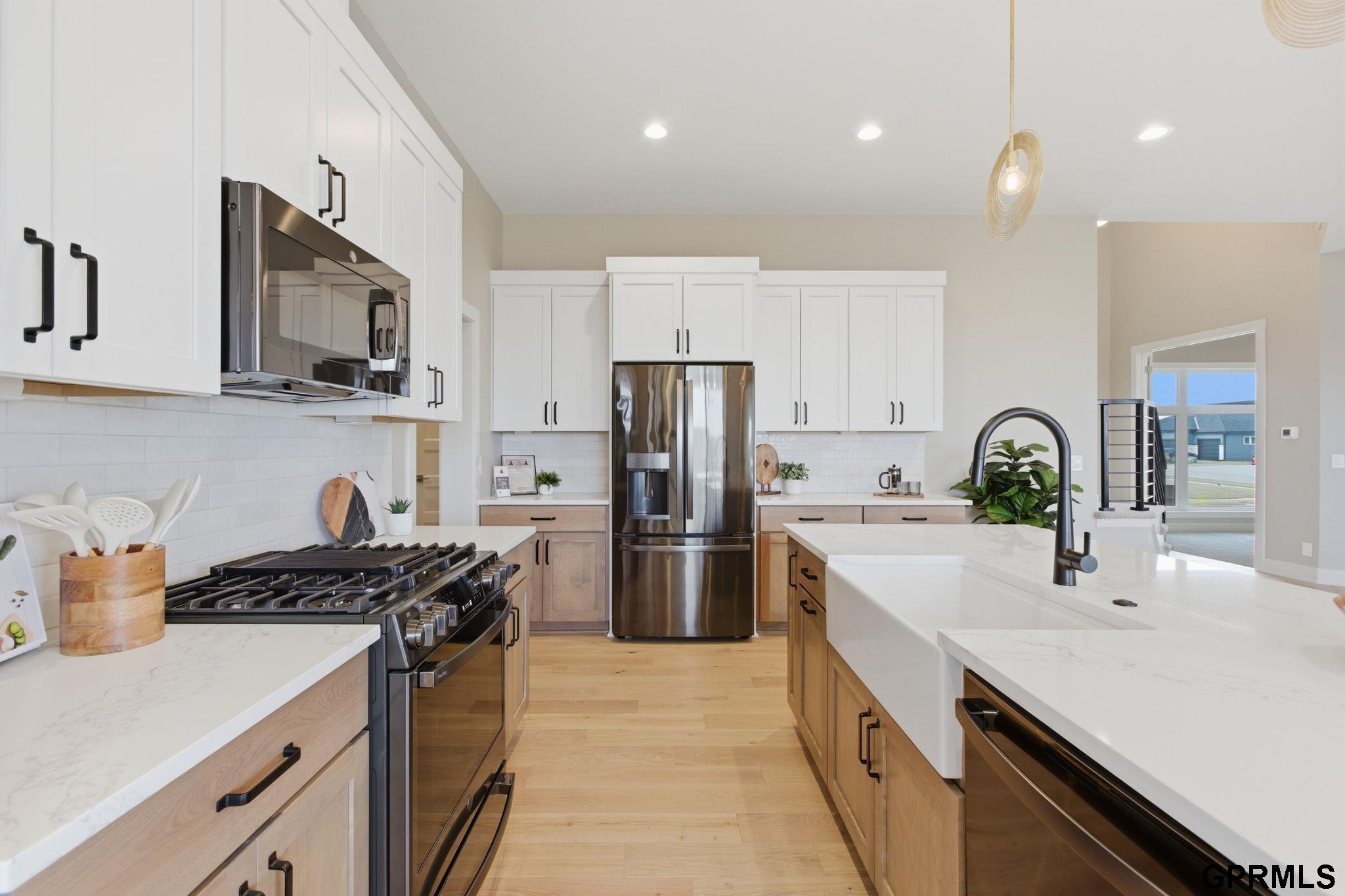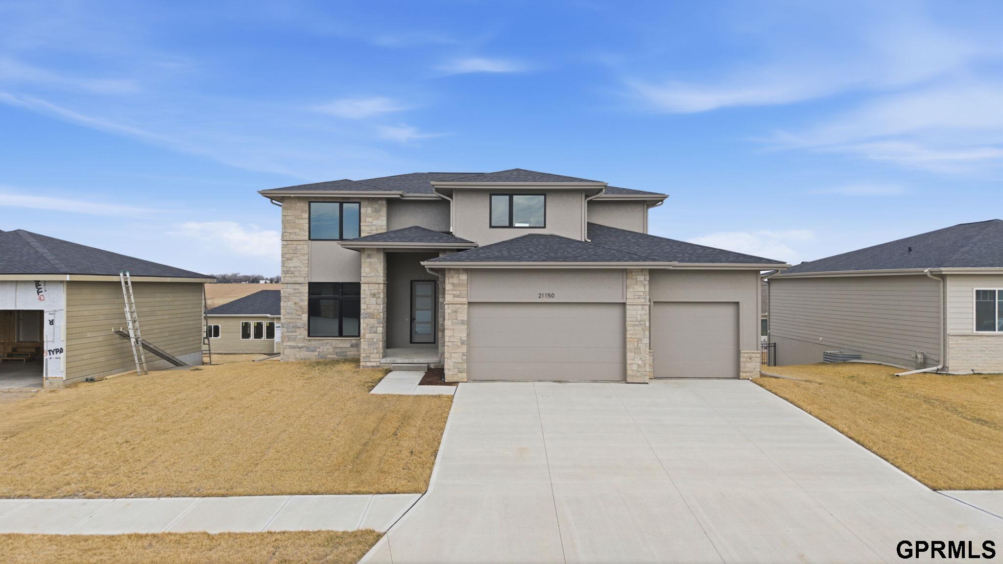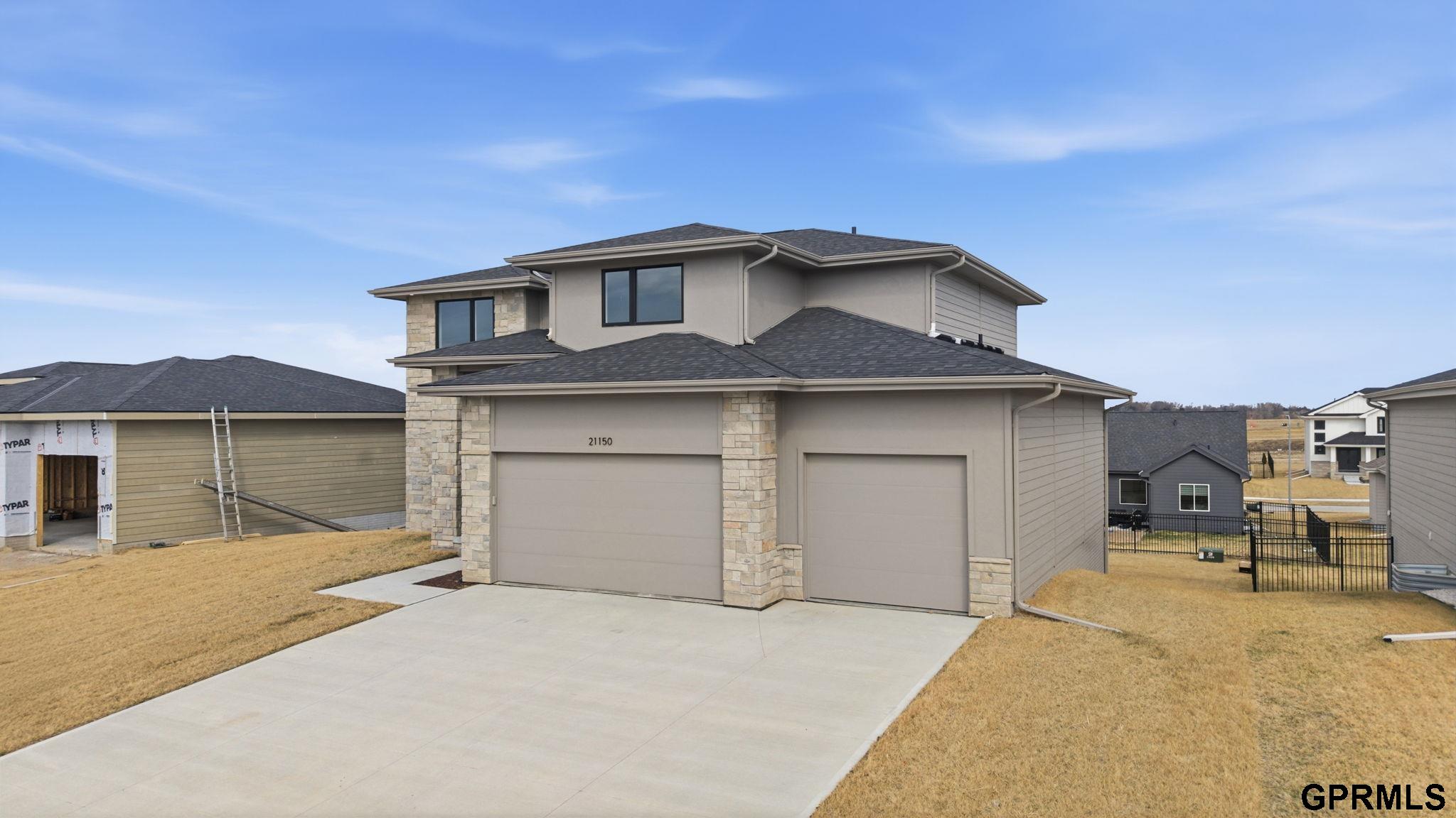 Back up offers. 5BR/5BA walkout 2-story in Calarosa, Elkhorn School District, Omaha. Finished basement, 3.5-car garage, covered patio. New construction completed in 2025. Completed in 2025, this quality built 2-story offers 3,477 finished square feet, 5 bedrooms, and 5 bathrooms with walkout bsmt. The finished basement includes an additional bedroom, bath, family room, rec area, and wet bar. A 1-year builder warranty is included. Inside, 10-foot ceilings, an open floorplan, and hardwood, tile, granite, and quartz finishes provide durability and flow. The kitchen includes all appliances and a walk-in pantry for storage and function. The primary bath features a soaker tub, double sinks, and a walk-in shower. Exterior features include a covered deck, sprinkler system, and exterior garage access. Pella windows, high efficiency HVAC, and a poured foundation support long-term performance.