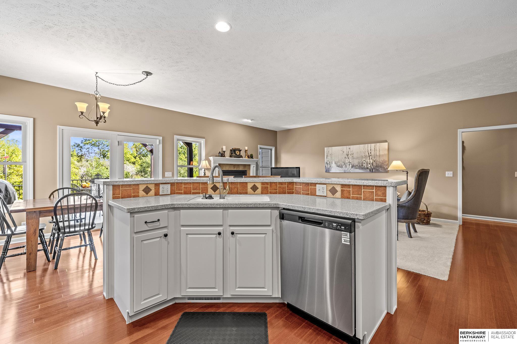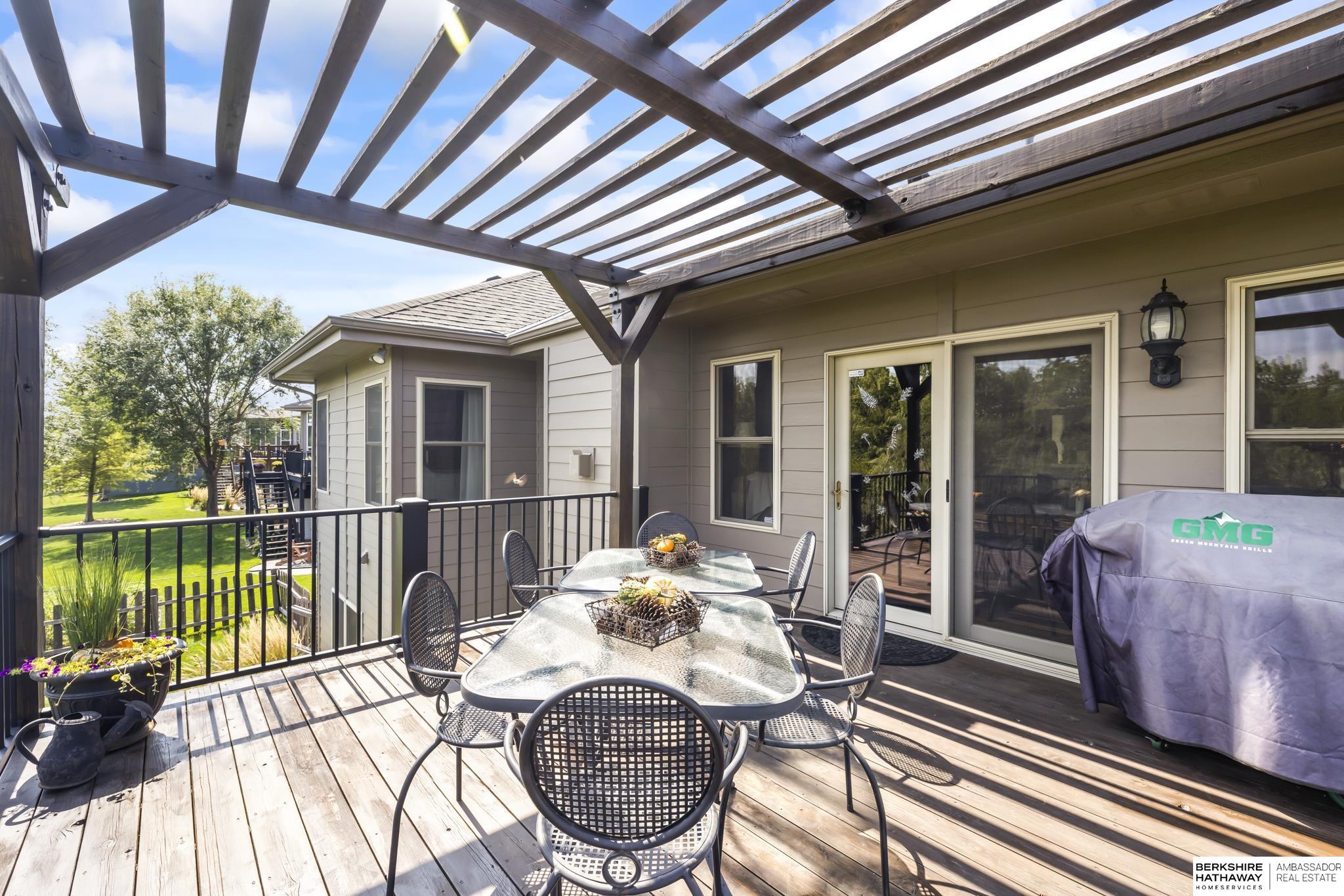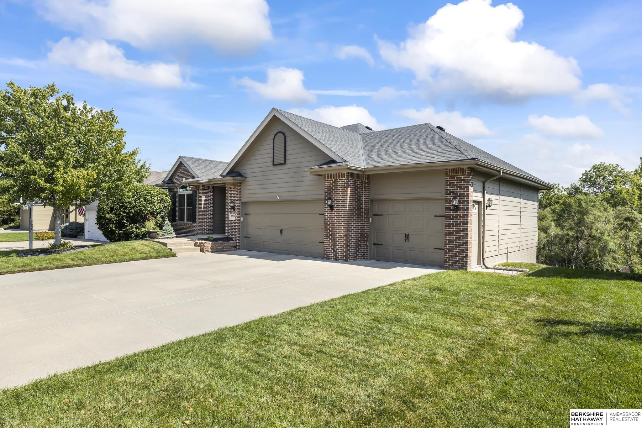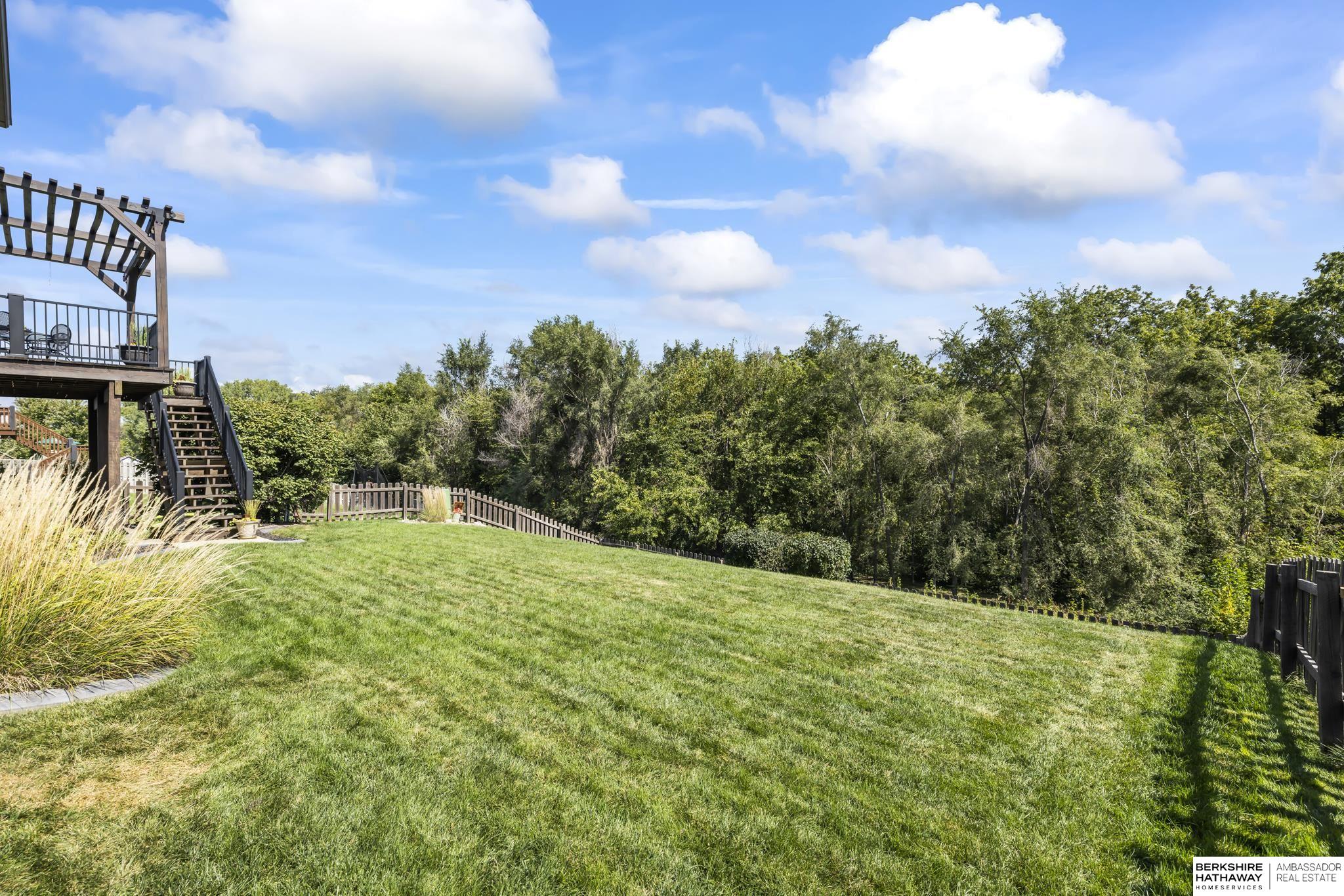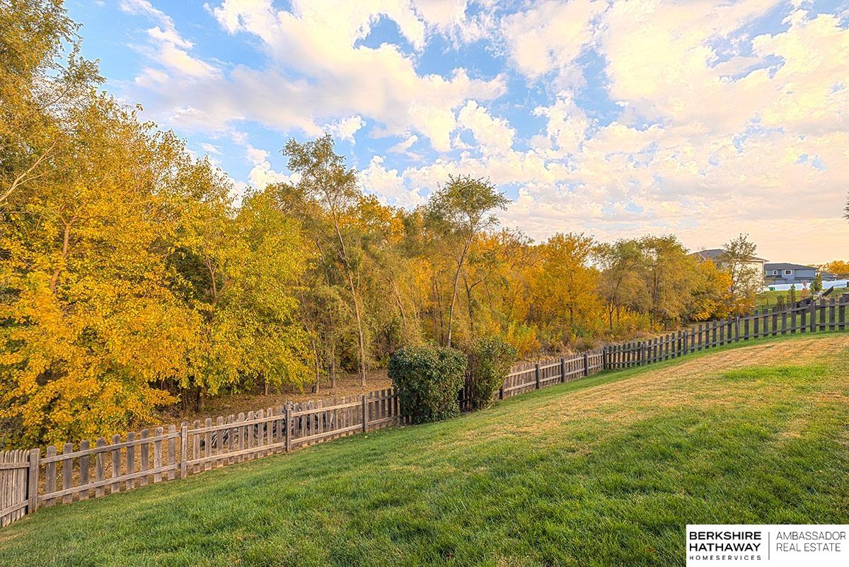 Spectacular 4-bed/3-bath, walkout ranch in the excellent Elkhorn School District! One owner, meticulously maintained, spacious, and spotless home with oversized, 3-car tandem garage and easy access to Dodge Street. Open-concept great room with gas fireplace flows to an airy kitchen and substantial pantry, which overlooks the newly updated pergola deck facing a secluded, forested tree line view; perfect for meditative moments viewing nature’s best variety of birds. Retreat to the primary suite with a whirlpool tub, shower, double sinks, and generous walk-in closet. The lower level features 2 beds (1 with walk-in closet), full bath, 2 sizable storage/exercise areas, and family room leading to a private, serene patio and landscaped fenced yard. Updates include sprinkler control panel, tiled flooring in all baths, custom room darkening shades, newer A/C and dishwasher, furnace blower/capacitor, sump pump, cabinetry, and more. Immaculate and detailed; truly move-in ready for you!