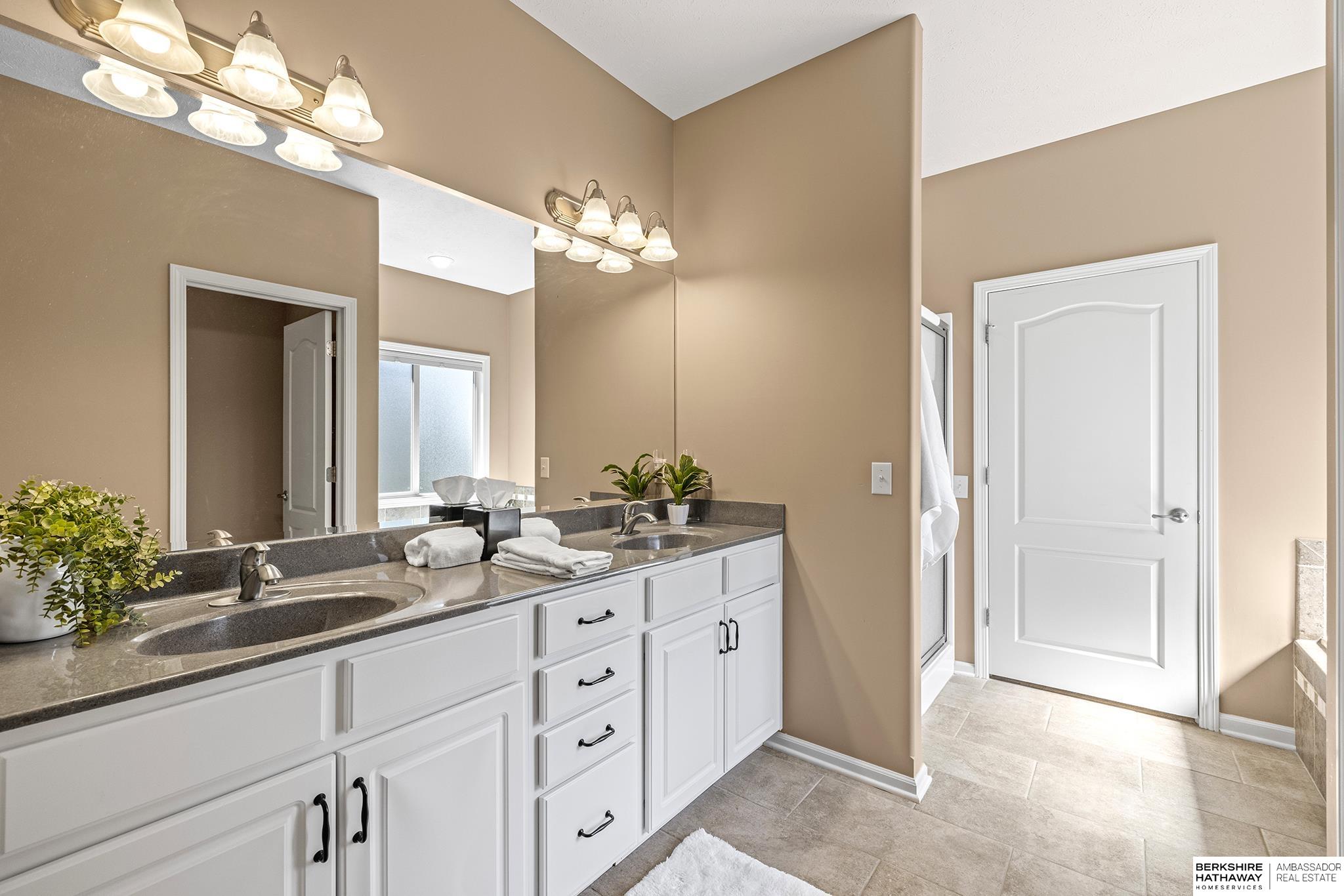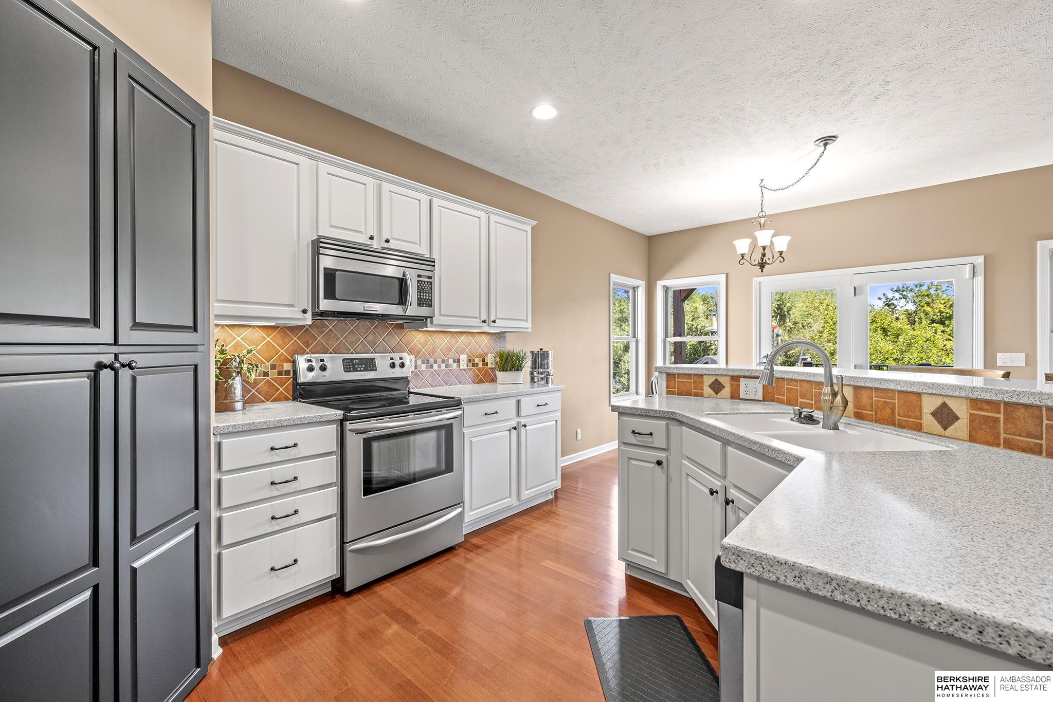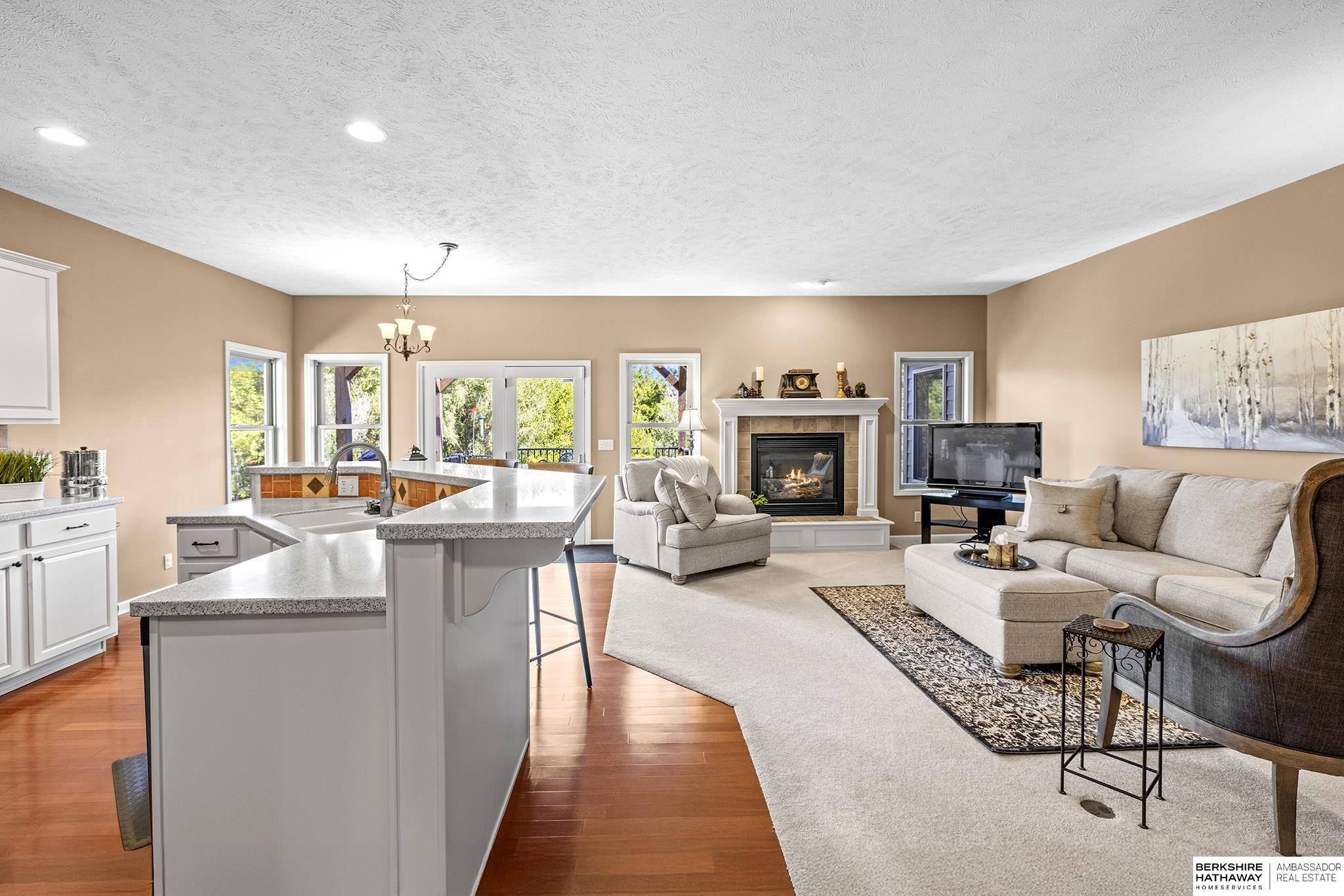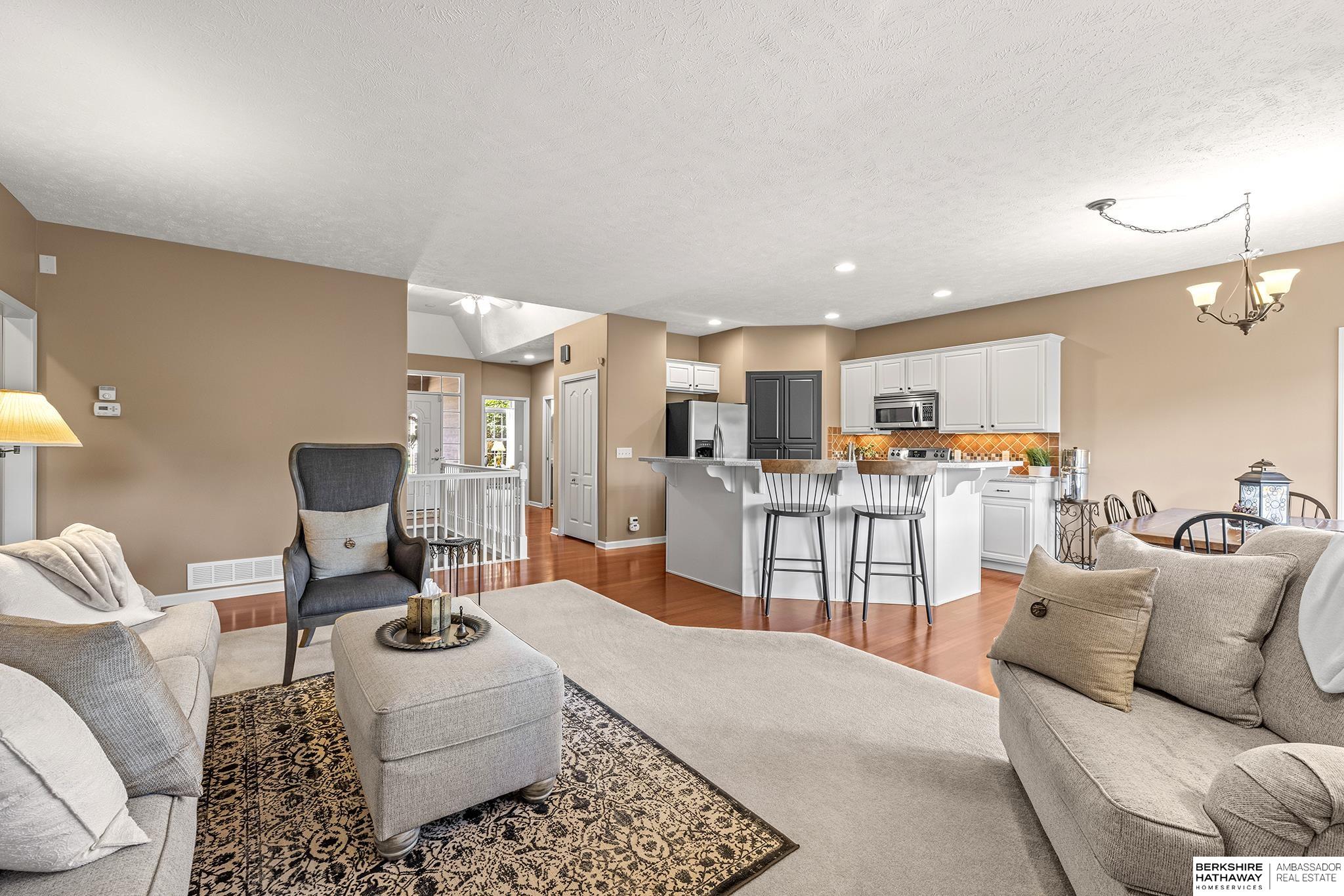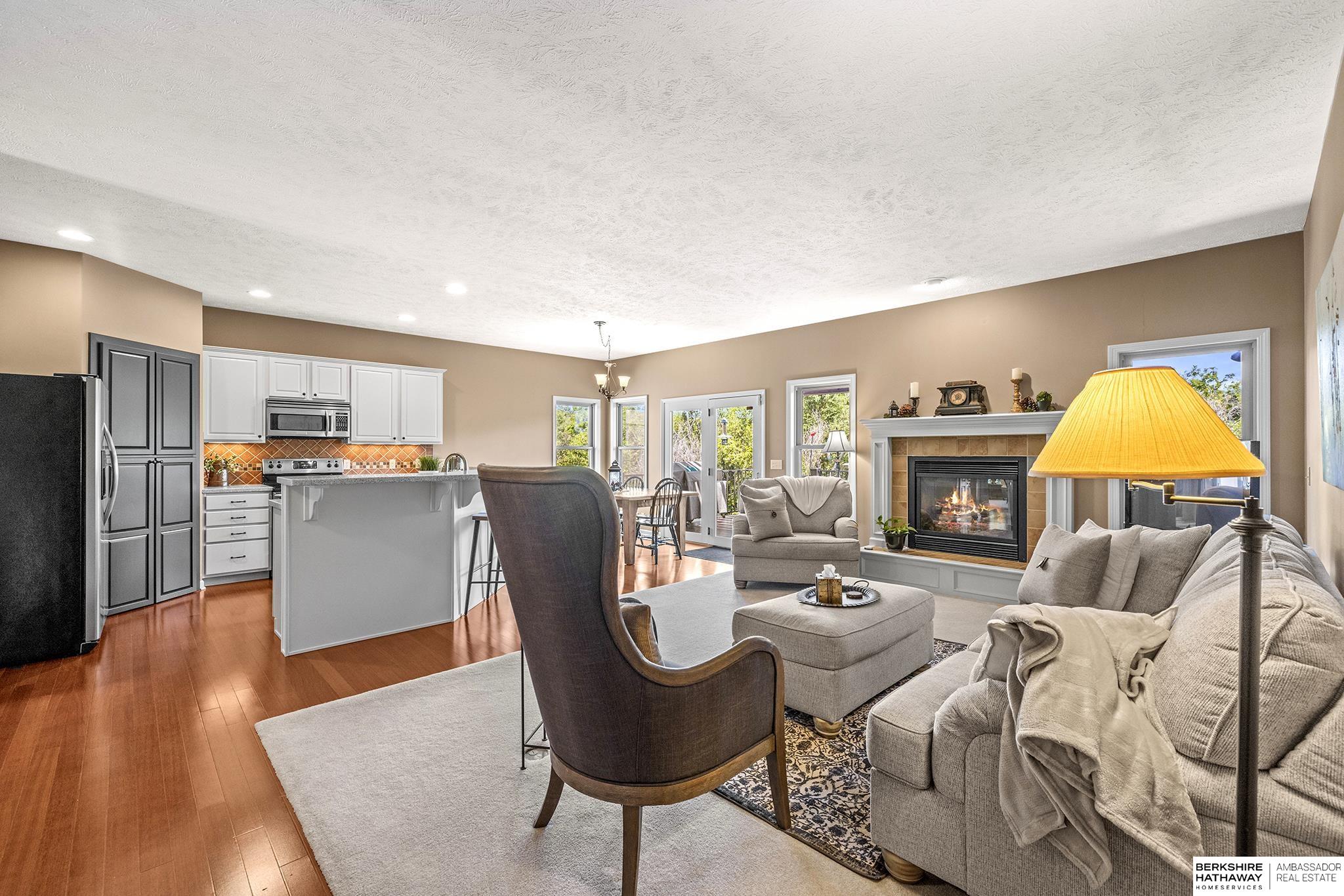 Spectacular 4-bed/3-bath, walkout ranch in the excellent Elkhorn School District! One owner, meticulously maintained, spacious, and spotless home with oversized, 3-car tandem garage and easy access to Dodge Street. Open-concept great room with gas fireplace flows to an airy kitchen and substantial pantry, which overlooks the newly updated pergola deck facing a secluded, forested tree line view; perfect for meditative moments viewing nature’s best variety of birds. Retreat to the primary suite with a whirlpool tub, shower, double sinks, and generous walk-in closet. The lower level features 2 beds (1 with walk-in closet), full bath, 2 sizable storage/exercise areas, and family room leading to a private, serene patio and landscaped fenced yard. Updates include sprinkler control panel, tiled flooring in all baths, custom room darkening shades, newer A/C and dishwasher, furnace blower/capacitor, sump pump, cabinetry, and more. Immaculate and detailed; truly move-in ready for you!