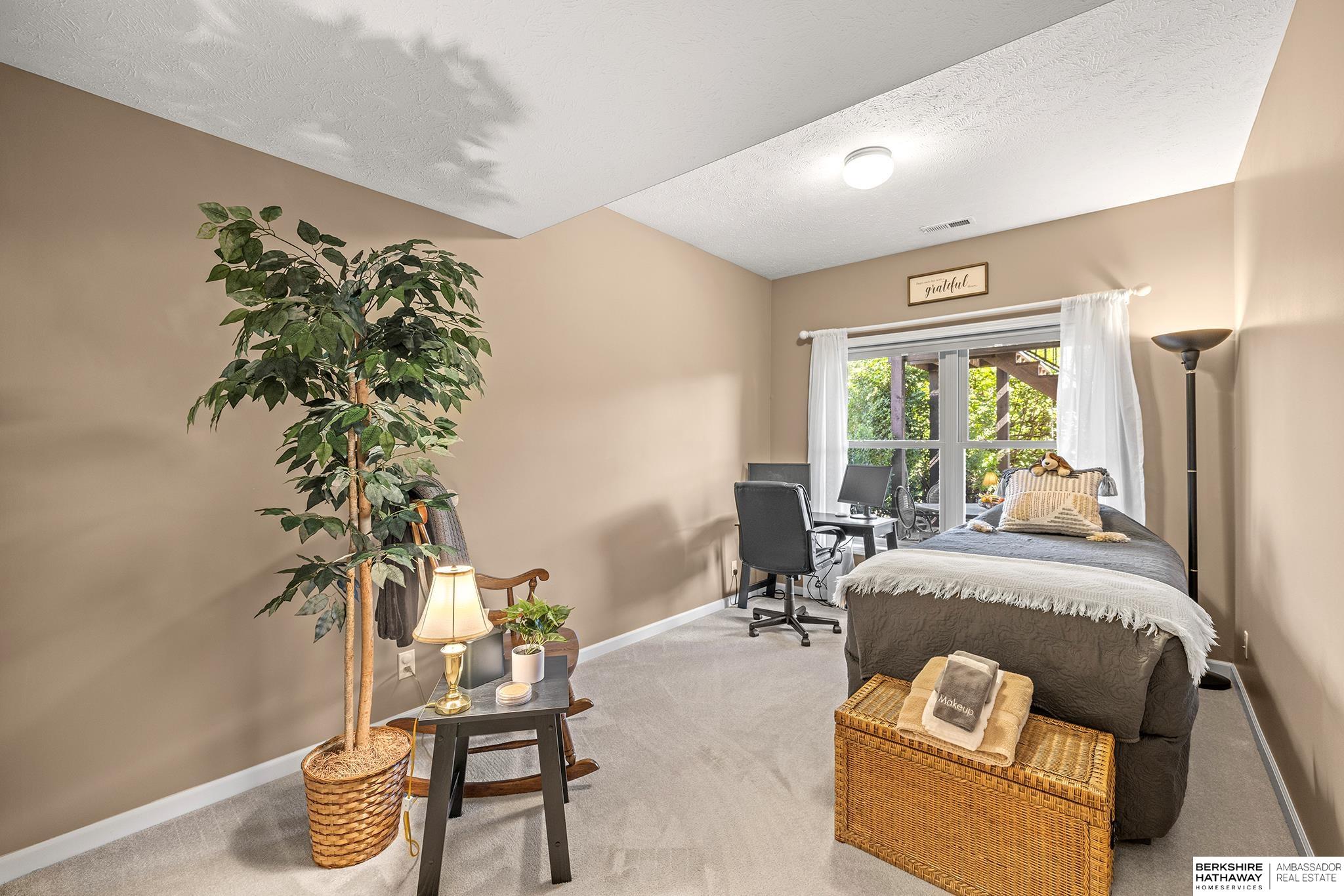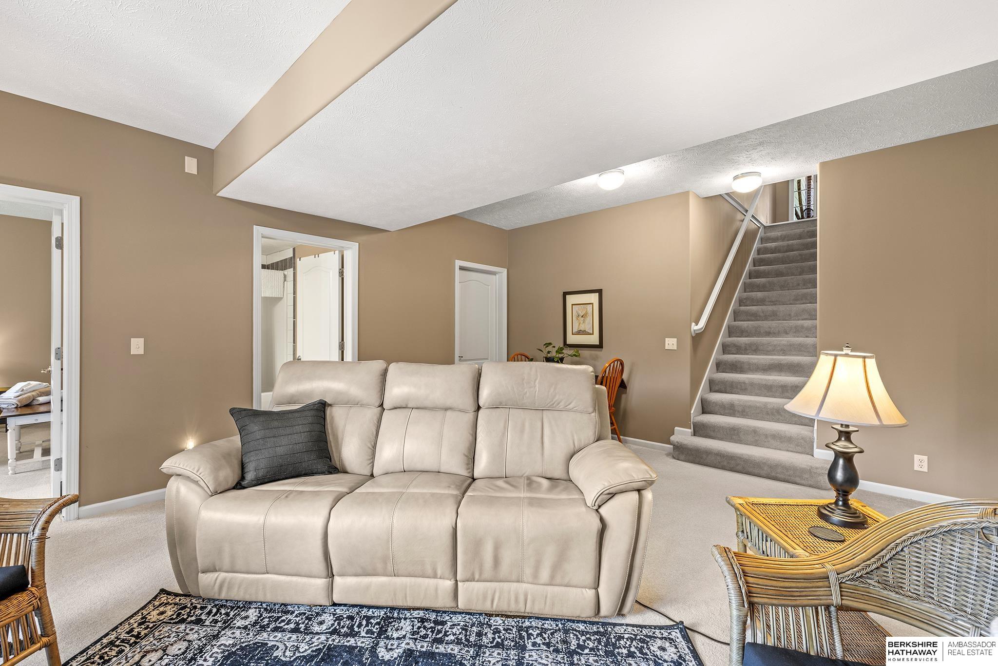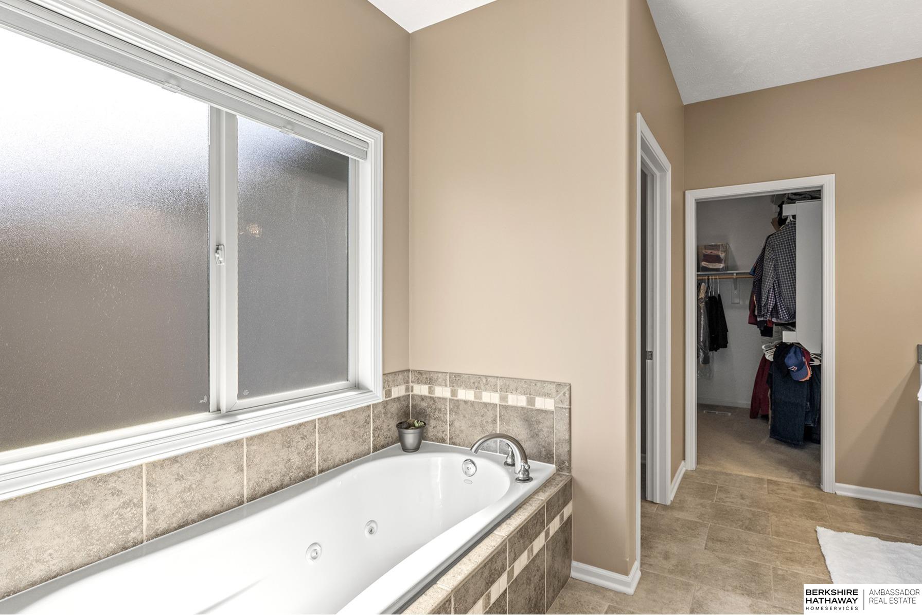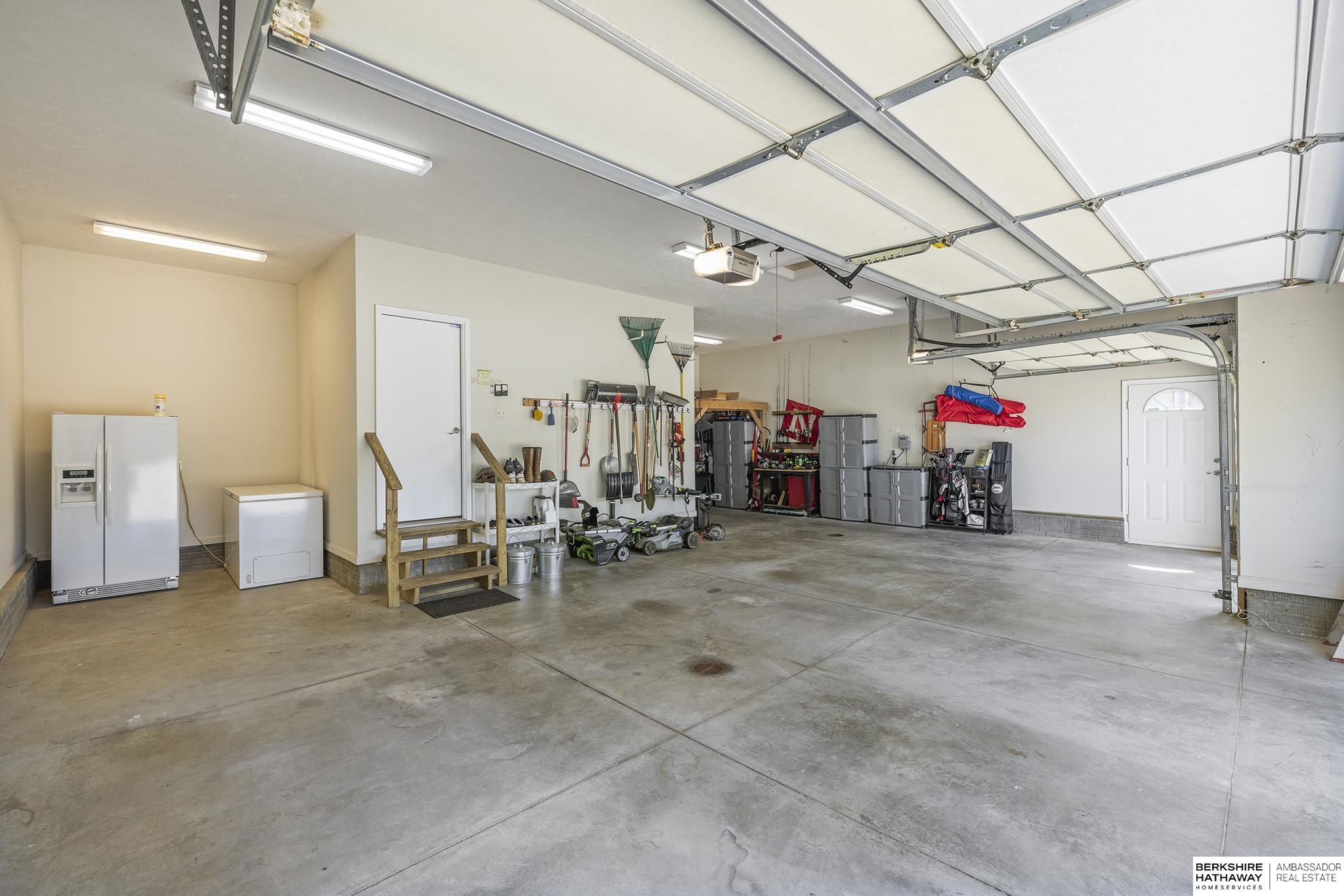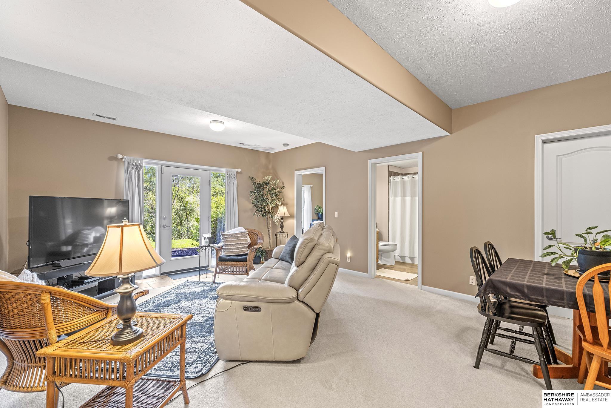 Spectacular 4-bed/3-bath, walkout ranch in the excellent Elkhorn School District! One owner, meticulously maintained, spacious, and spotless home with oversized, 3-car tandem garage and easy access to Dodge Street. Open-concept great room with gas fireplace flows to an airy kitchen and substantial pantry, which overlooks the newly updated pergola deck facing a secluded, forested tree line view; perfect for meditative moments viewing nature’s best variety of birds. Retreat to the primary suite with a whirlpool tub, shower, double sinks, and generous walk-in closet. The lower level features 2 beds (1 with walk-in closet), full bath, 2 sizable storage/exercise areas, and family room leading to a private, serene patio and landscaped fenced yard. Updates include sprinkler control panel, tiled flooring in all baths, custom room darkening shades, newer A/C and dishwasher, furnace blower/capacitor, sump pump, cabinetry, and more. Immaculate and detailed; truly move-in ready for you!