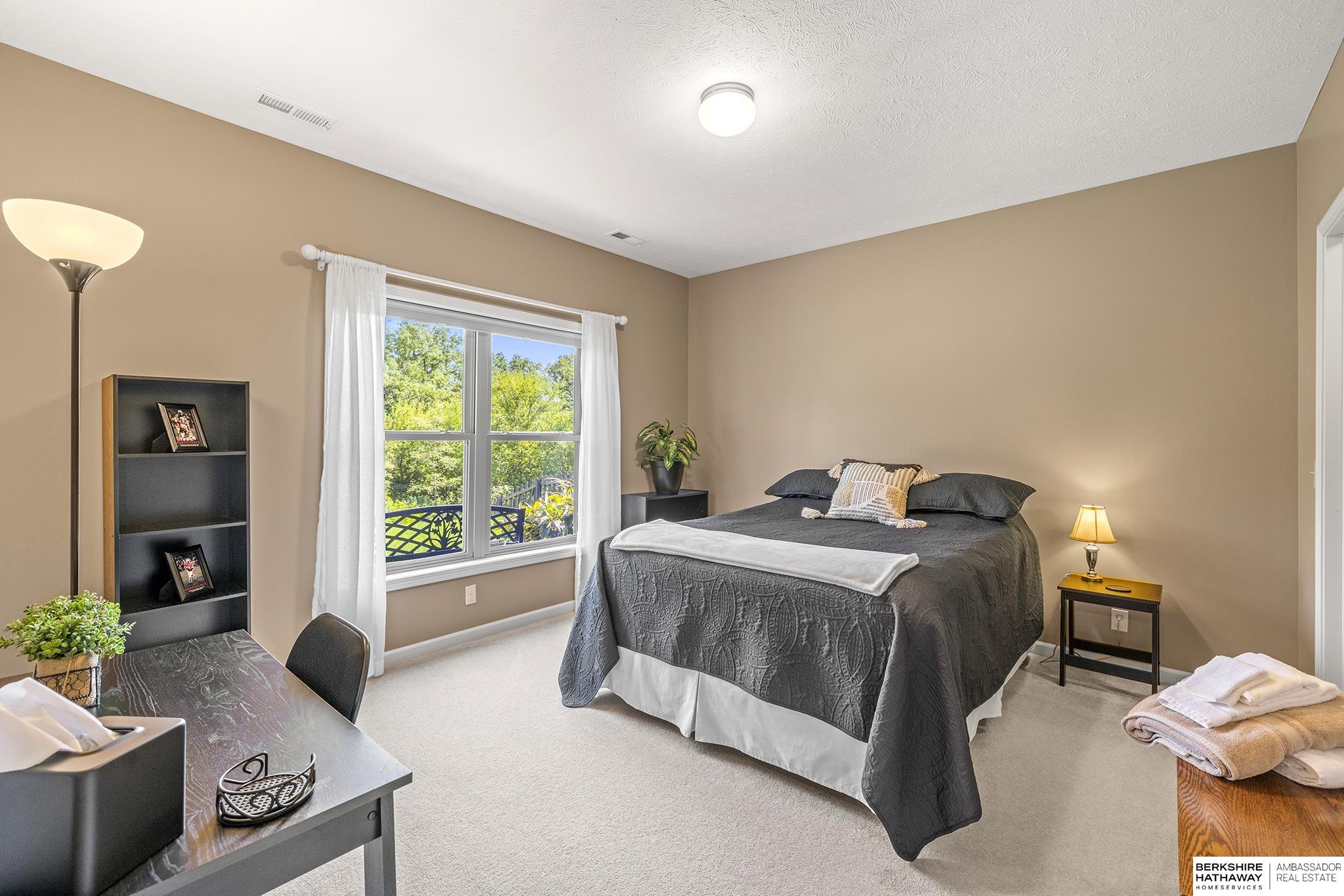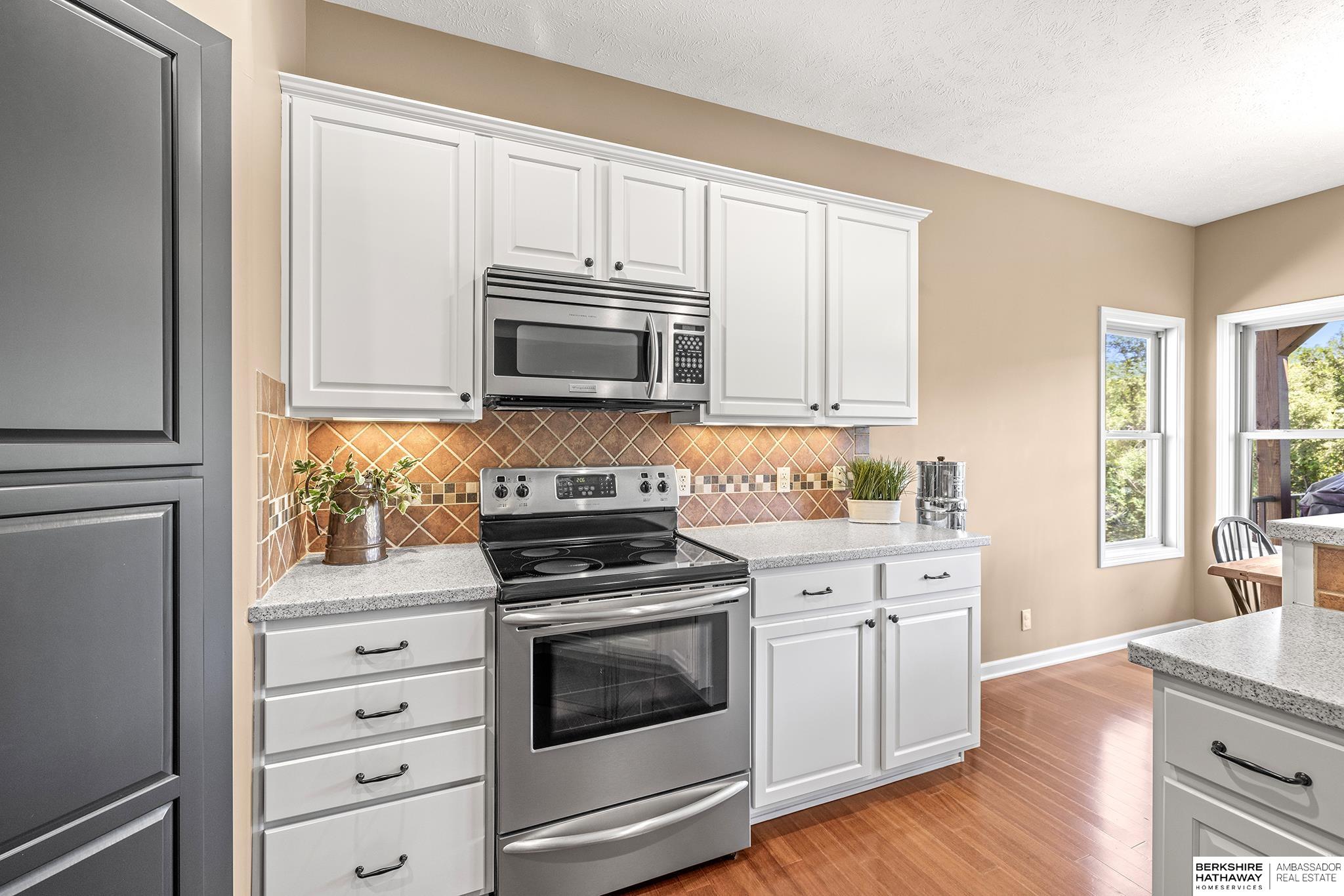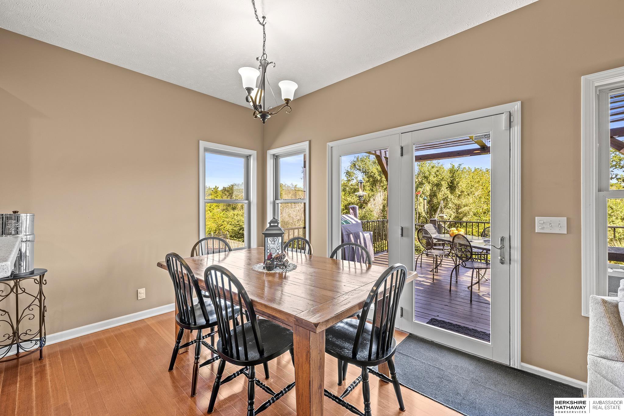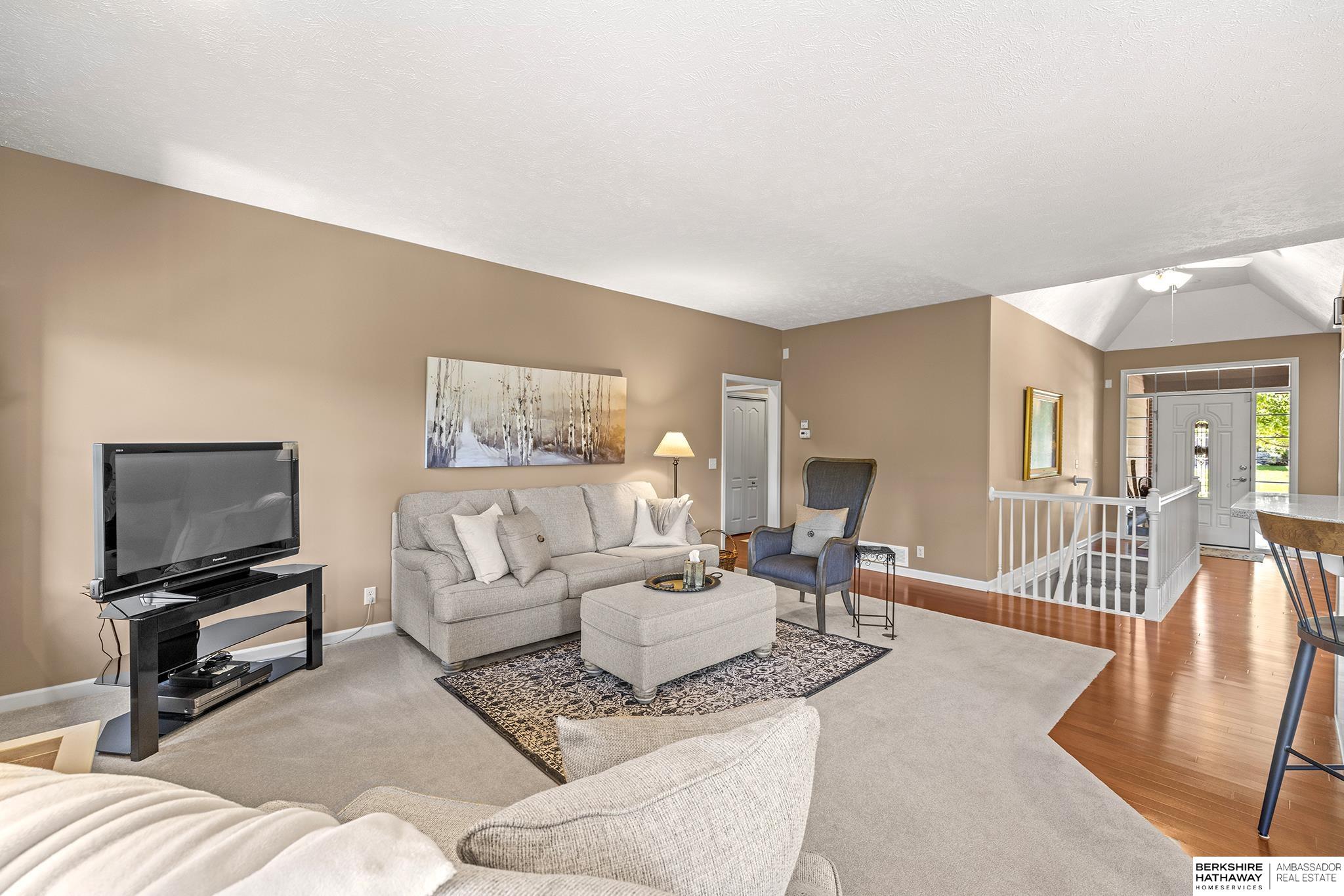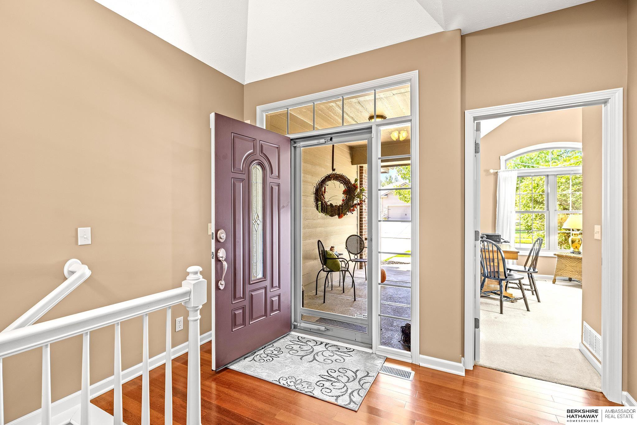 Spectacular 4-bed/3-bath, walkout ranch in the excellent Elkhorn School District! One owner, meticulously maintained, spacious, and spotless home with oversized, 3-car tandem garage and easy access to Dodge Street. Open-concept great room with gas fireplace flows to an airy kitchen and substantial pantry, which overlooks the newly updated pergola deck facing a secluded, forested tree line view; perfect for meditative moments viewing nature’s best variety of birds. Retreat to the primary suite with a whirlpool tub, shower, double sinks, and generous walk-in closet. The lower level features 2 beds (1 with walk-in closet), full bath, 2 sizable storage/exercise areas, and family room leading to a private, serene patio and landscaped fenced yard. Updates include sprinkler control panel, tiled flooring in all baths, custom room darkening shades, newer A/C and dishwasher, furnace blower/capacitor, sump pump, cabinetry, and more. Immaculate and detailed; truly move-in ready for you!
