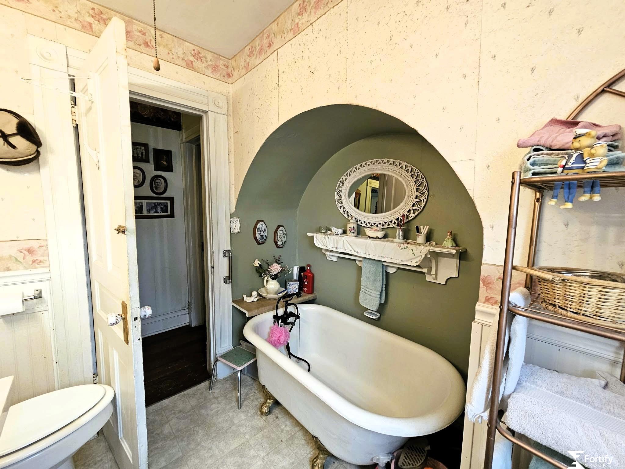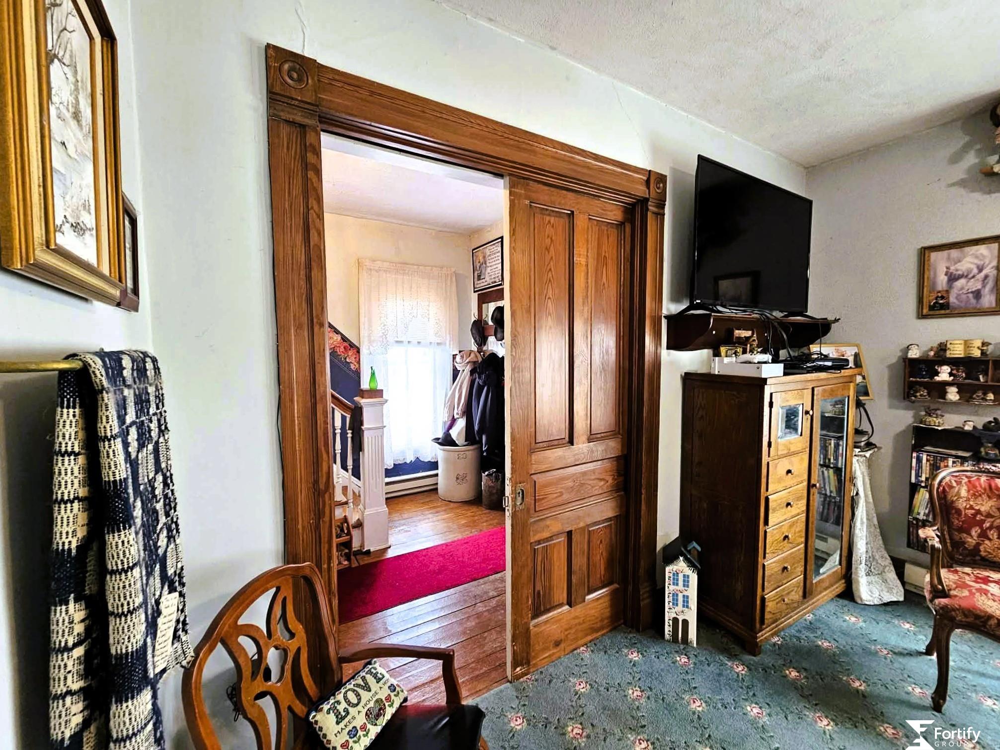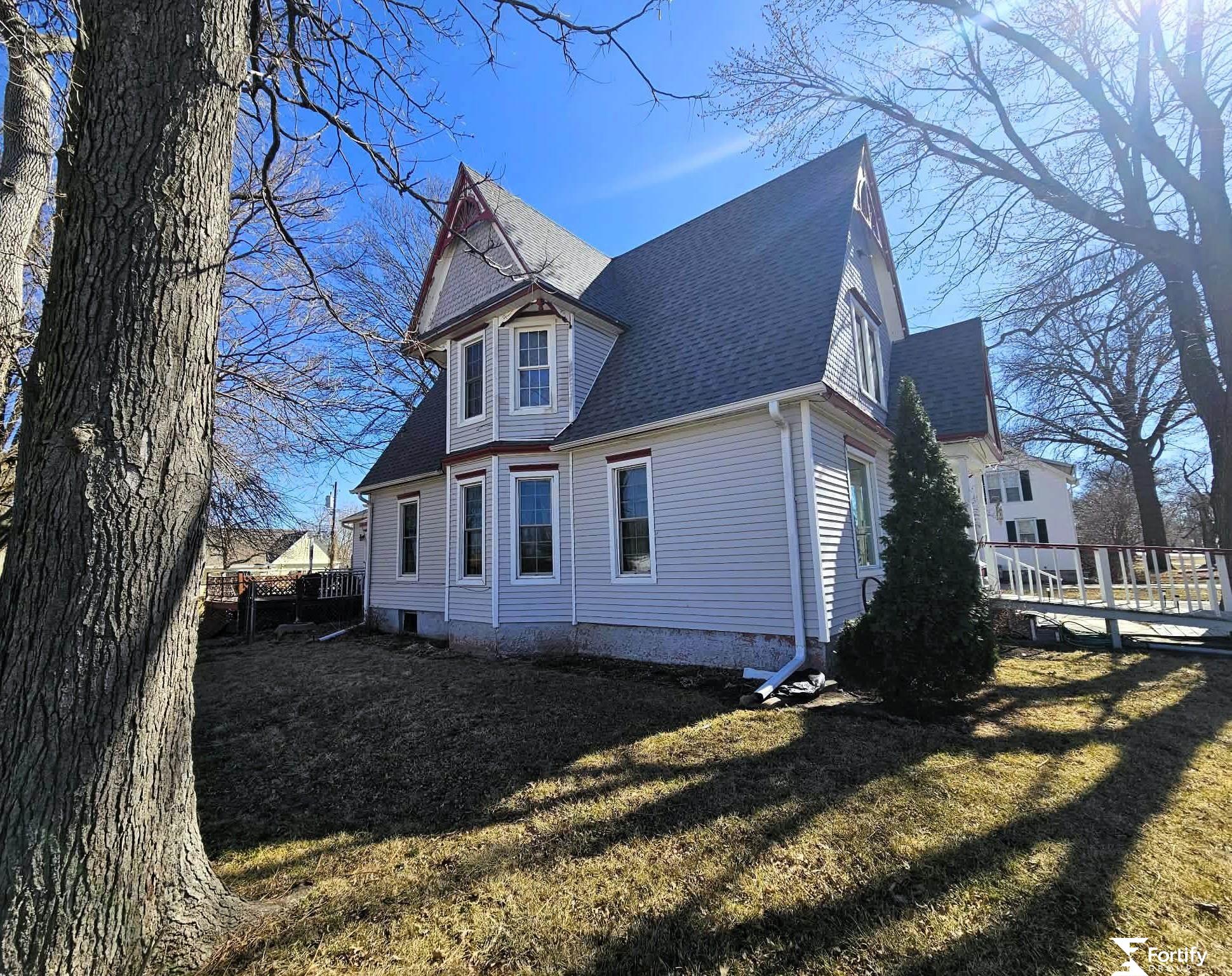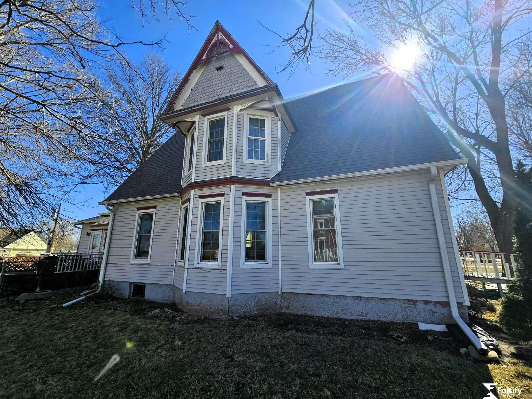 Classic 1920s character meets everyday functionality in this 4-bedroom, 2-bath, 1.5-story home. Original woodwork, a pocket door, and stained glass windows highlight its historic charm. Wood floors appear in select rooms, with additional wood flooring believed to be beneath portions of the carpet. The main level offers comfortable living and dining spaces, main-floor laundry, and a three-quarter bath. Upstairs features additional bedrooms and a full bath with a clawfoot tub. Exterior updates include newer siding, windows, added insulation, and roof improvements. Detached garage and spacious in-town lot. Now offered at a new price, this home presents an excellent opportunity to own a property with character, space, and potential. Seller is relocating and ready to move forward.