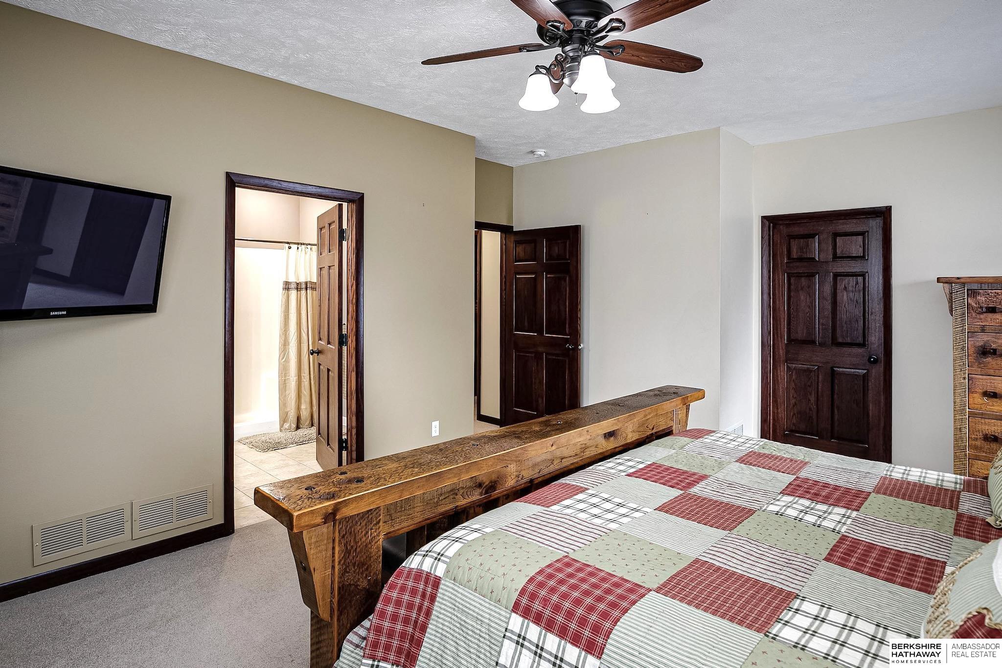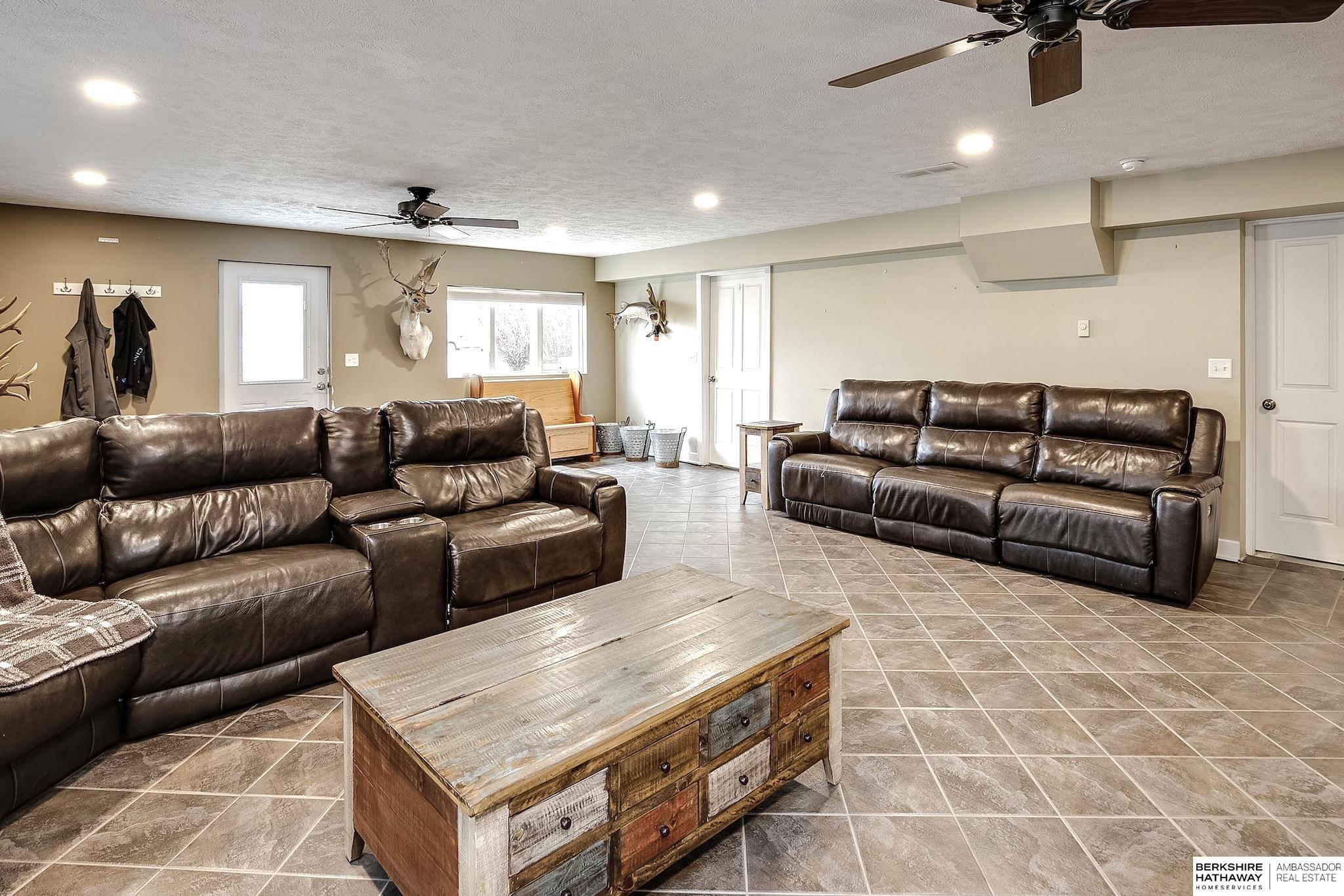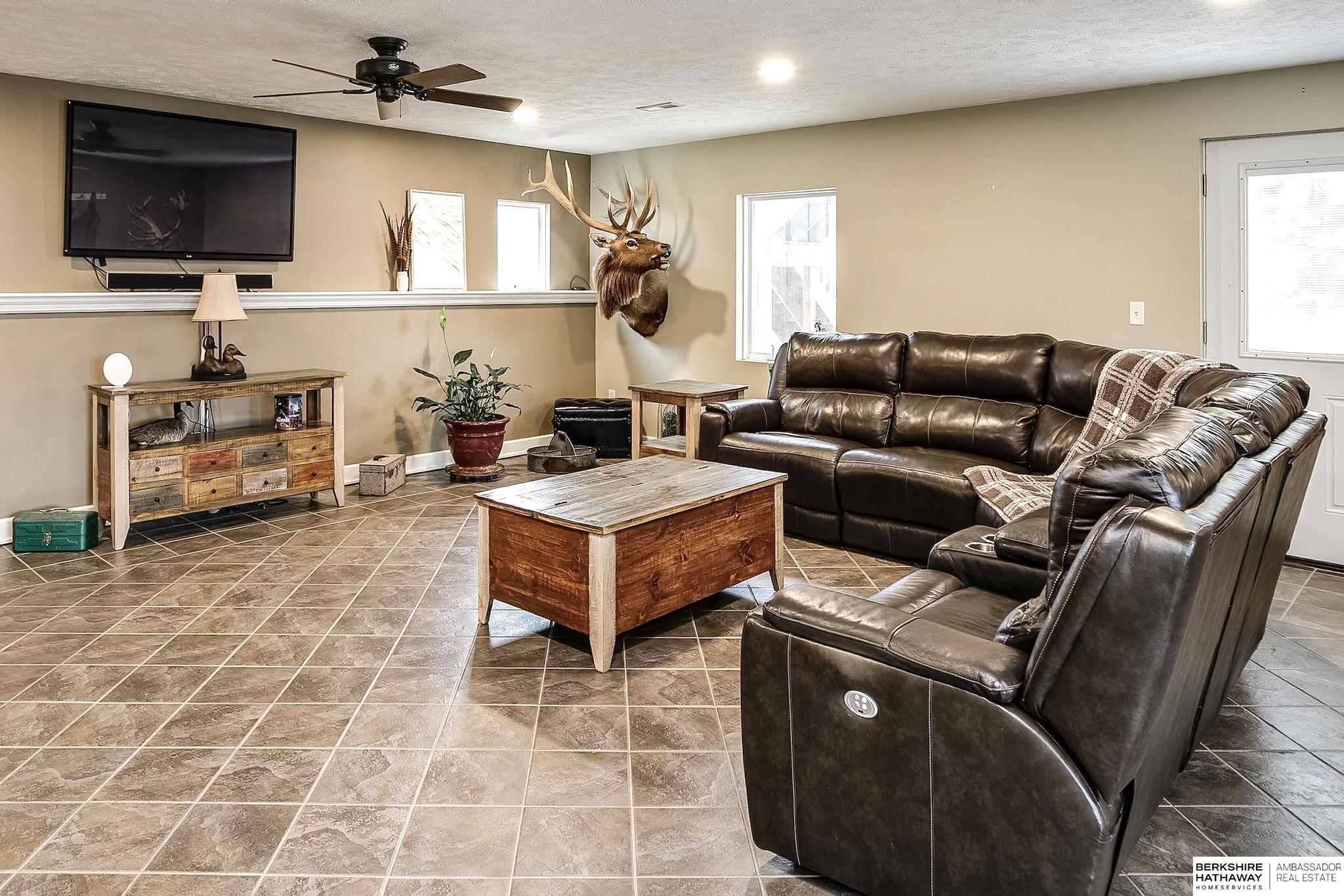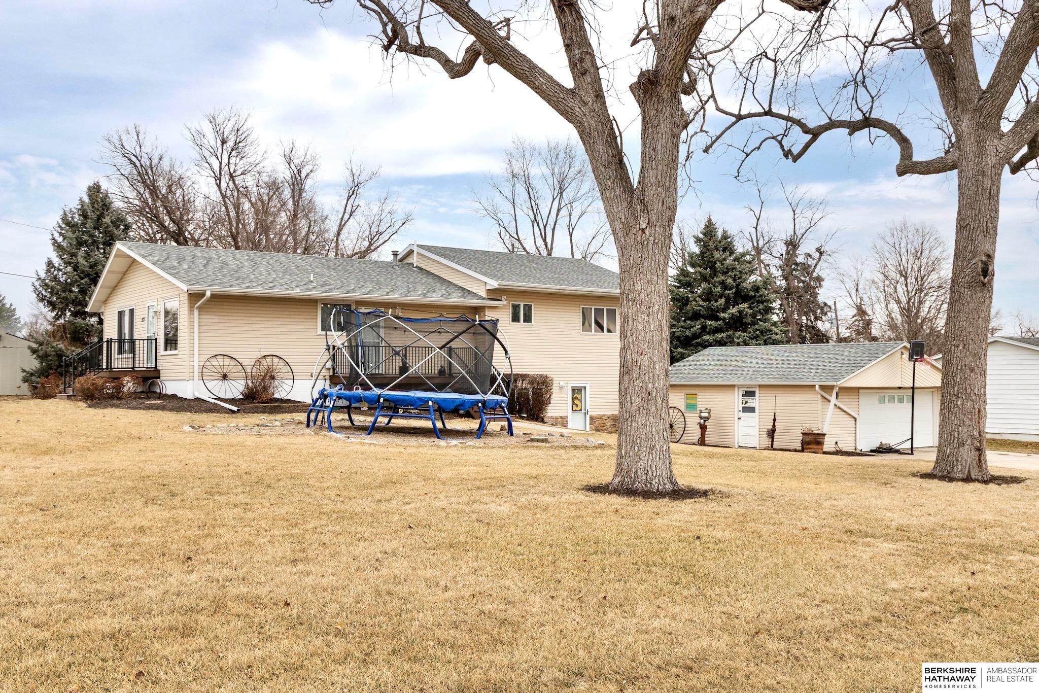 Rare 4 bed 3 bath ranch in Yutan! This home sits on a 1/3 of an acre corner lot in charming small town. Featuring over 3200 sq ft- Main floor includes updated kitchen and dining area with stunning hardwood floors, custom butcher block peninsula and painted cabinets- tons of storage, gas range and huge picture windows. 4 generously sized bedrooms + updated hall bath. Primary bedroom with en suite bathroom with whirlpool tub + shower. Huge walk-in closet + access to private deck. Walkout lower level features living area with tons of natural light + heated tile floors. Flex room perfect for exercise room or additional storage. Laundry room area set up with kitchenette. Updated windows, maintenance free siding, oversized 2 car garage + sprinklers, 2 new composite decks. Don't miss this one!