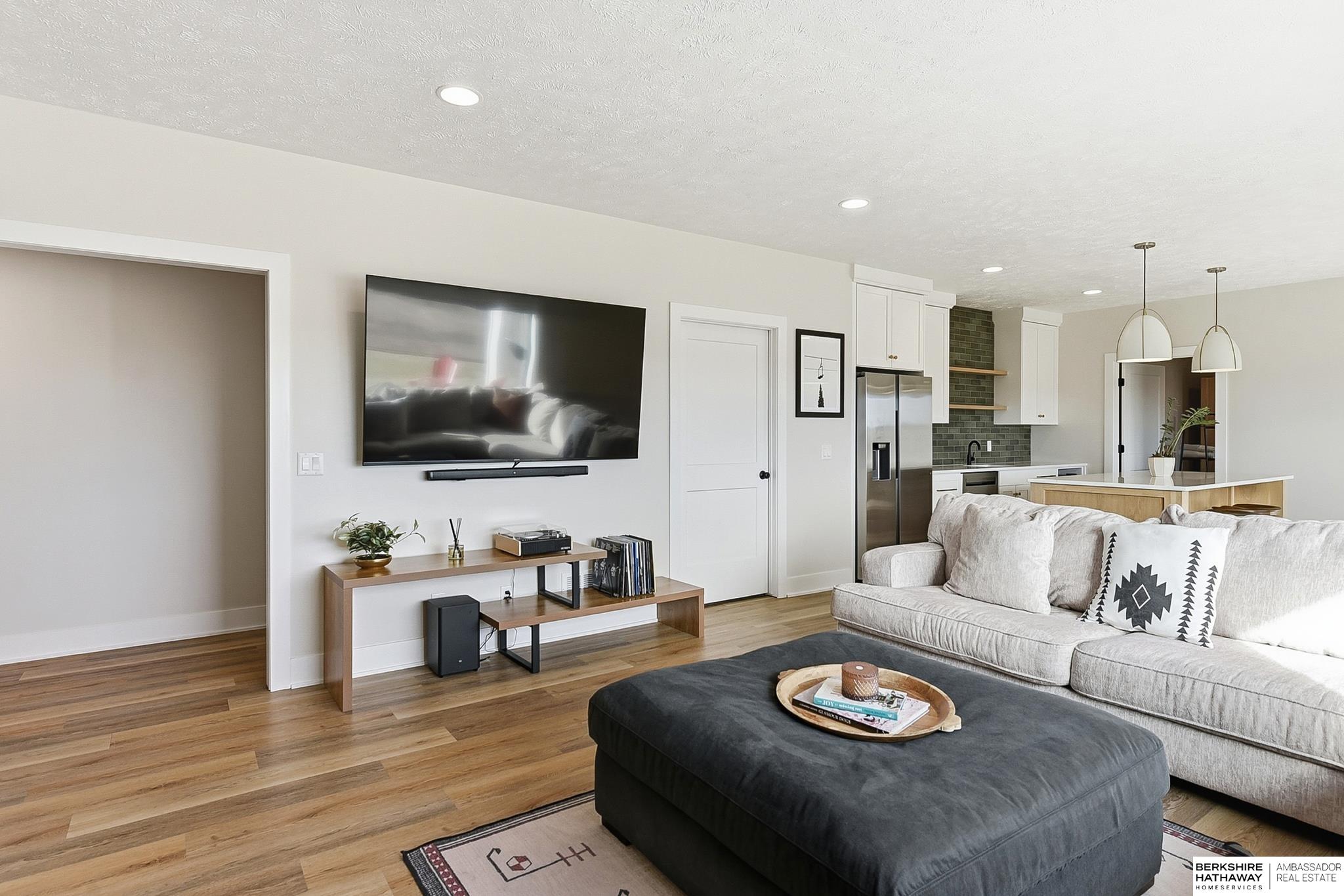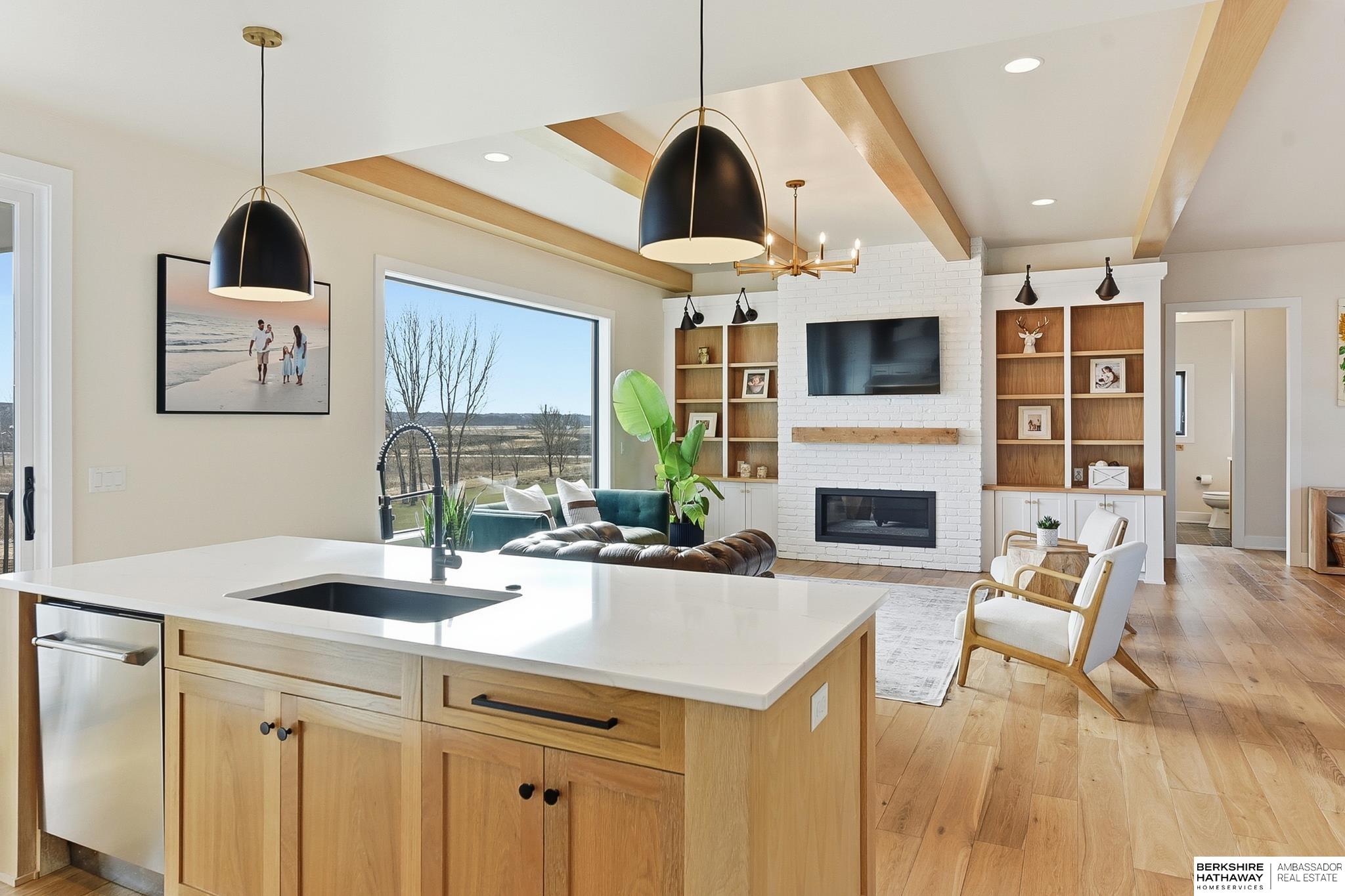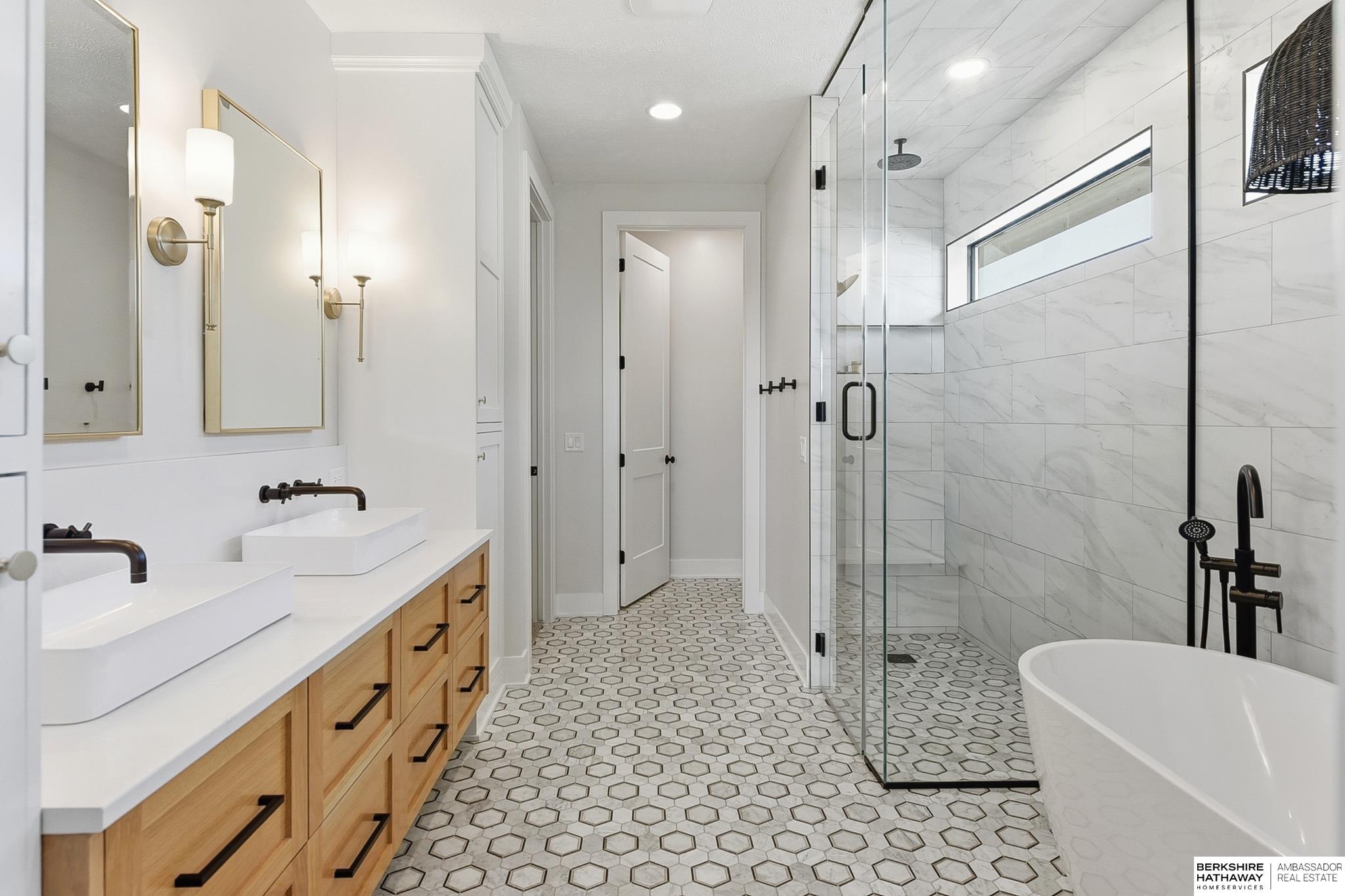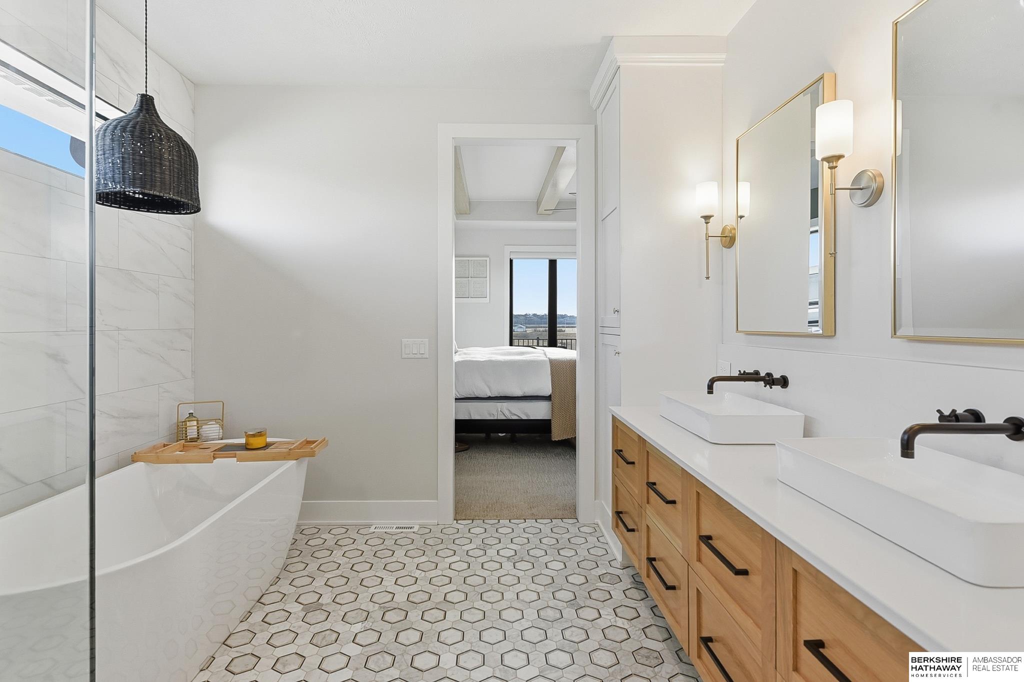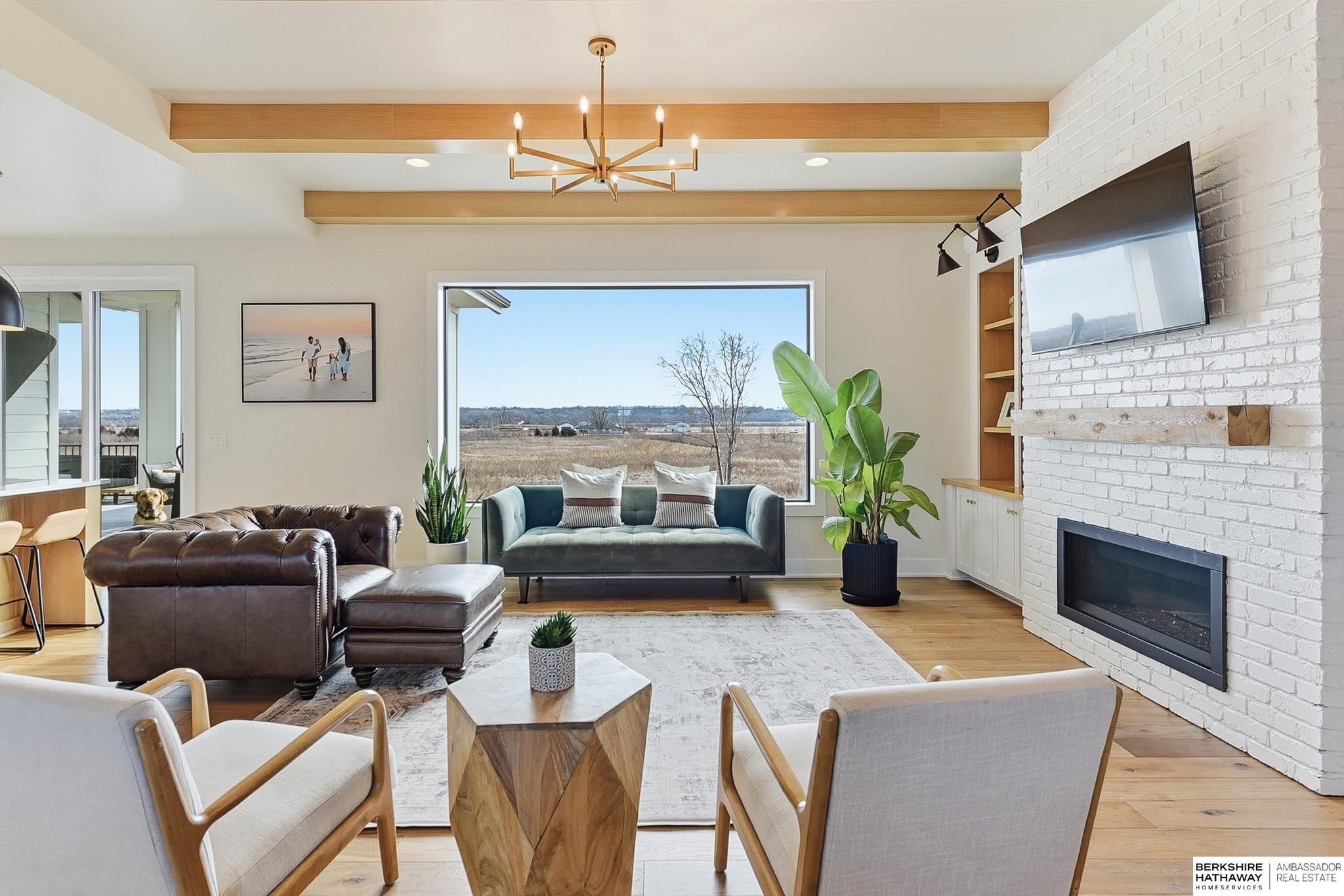 West Shores modern farmhouse home backing to a serene 100-acre HOA-owned wetland preserve. Enjoy access to a 203-acre recreational lake with marina and right to a boat slip, plus nearby trails and park amenities. Ideally located near Dodge and Center Streets, the home offers quick access to Omaha’s main thoroughfares while maintaining a peaceful, private setting. This custom walkout ranch features effortless main-level living with three spacious bedrooms, oversized windows, and abundant natural light. An expanded back deck overlooks the preserve with stunning sunrise views, while the front porch captures sunsets over the lake. The kitchen offers ample cabinetry, refined finishes, and a large butler’s pantry. The spa-like owner’s suite features a soaking tub, heated floor, and expansive walk-in shower. The lower level adds a large versatile bonus room and custom wine wall.
