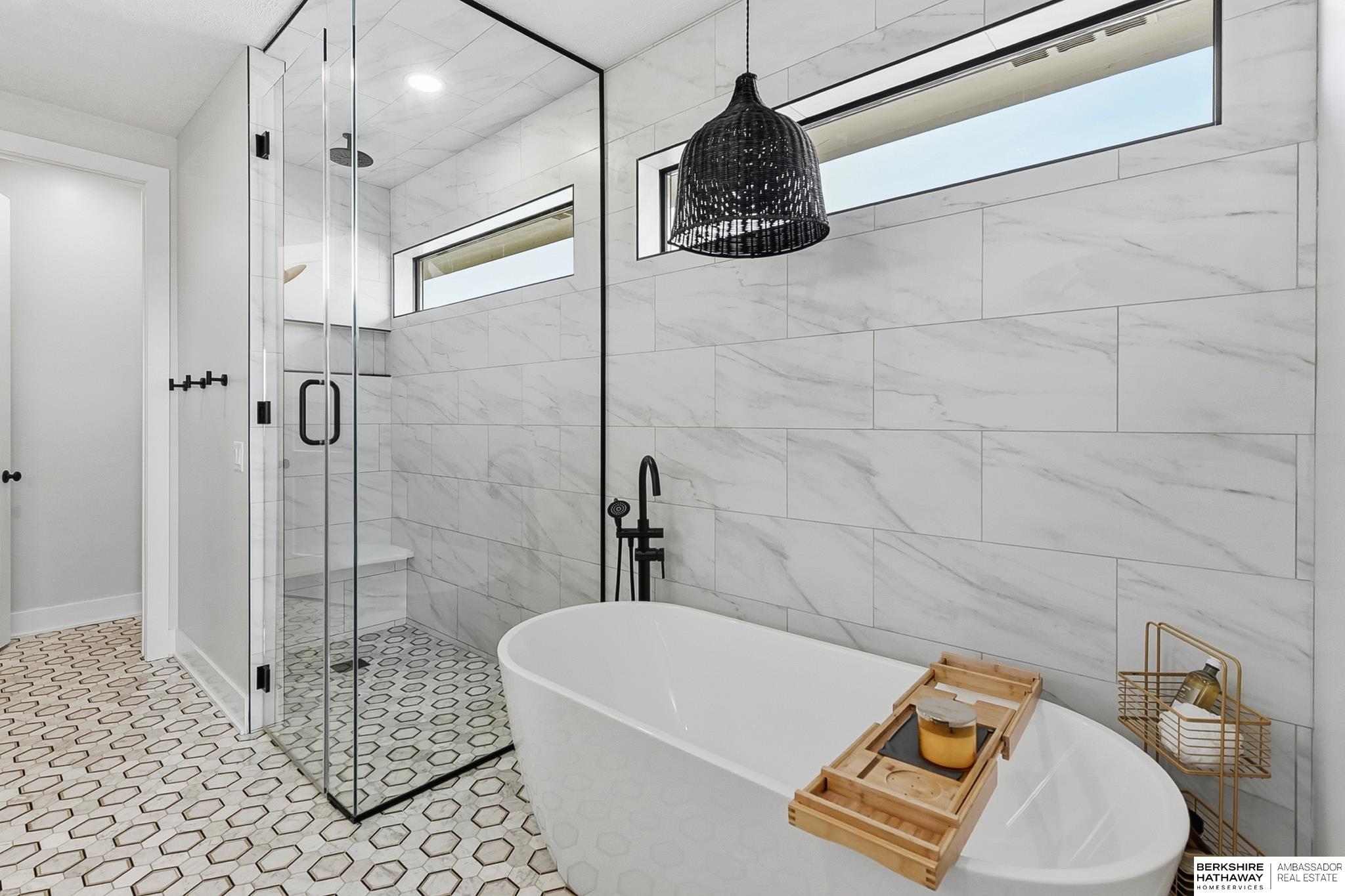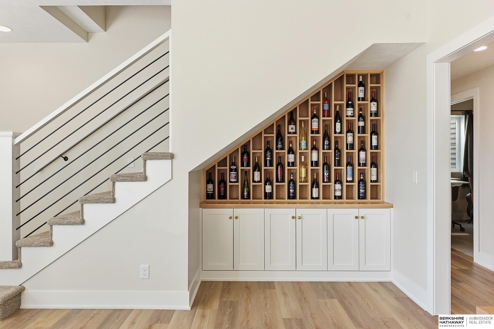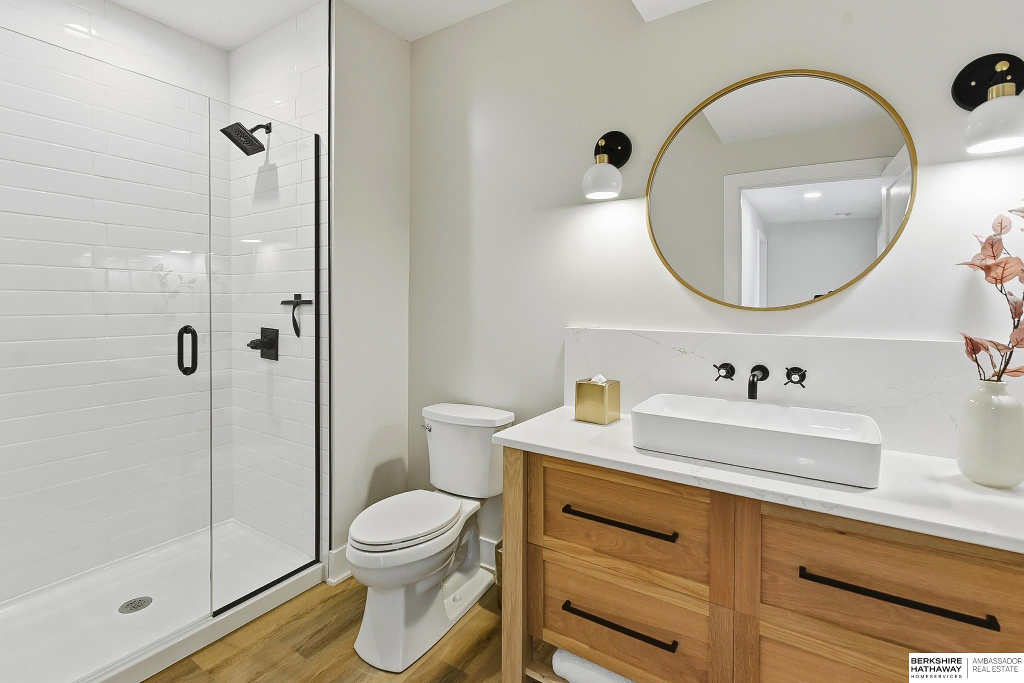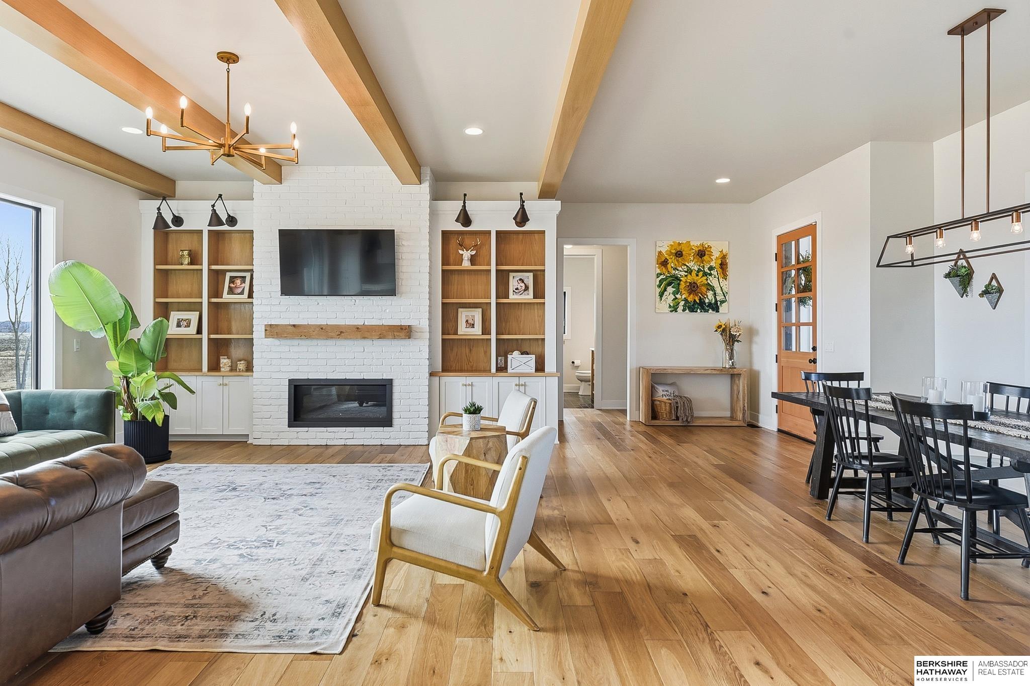 West Shores modern farmhouse home backing to a serene 100-acre HOA-owned wetland preserve. Enjoy access to a 203-acre recreational lake with marina and right to a boat slip, plus nearby trails and park amenities. Ideally located near Dodge and Center Streets, the home offers quick access to Omaha’s main thoroughfares while maintaining a peaceful, private setting. This custom walkout ranch features effortless main-level living with three spacious bedrooms, oversized windows, and abundant natural light. An expanded back deck overlooks the preserve with stunning sunrise views, while the front porch captures sunsets over the lake. The kitchen offers ample cabinetry, refined finishes, and a large butler’s pantry. The spa-like owner’s suite features a soaking tub, heated floor, and expansive walk-in shower. The lower level adds a large versatile bonus room and custom wine wall.